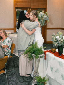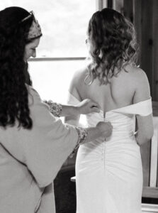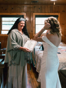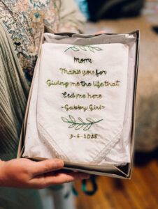 We kicked the wedding party out of the cabin so Gabs could have a moment alone while her mom zipped up her dress. Not a DRY EYE in the entire room :’). Gabs also gifted her mom an embroidered handkerchief, which did not help in stopping the waterworks from everyone.