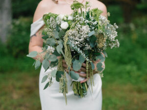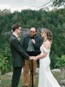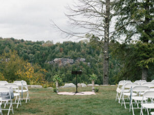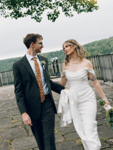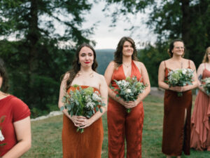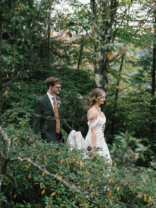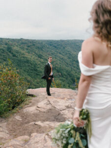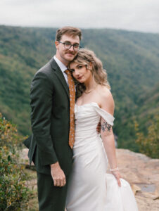 Nature and Appalachia itself are super important to Gabs + Cam – they’re constantly hiking, camping, and exploring. Gabs actually works at Phipps (where they had their engagement session!). It only made sense that their wedding took place by one of the most beautiful overlooks in the country! They wanted to incorporate lots of ferns, moss, thrifted vases, and autumnal colors.