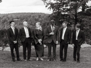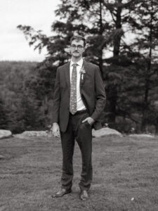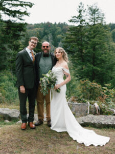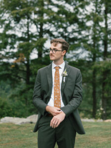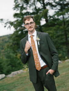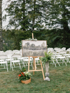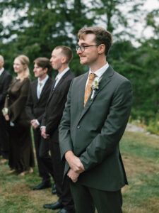 Logan and I headed over to Blackwater Lodge for the ceremony, which was taking place on Blackwater Canyon’s southern ridge overlooking a densely forested gorge. I’m glad a rented a fancy 35mm lens for this day, because the views were absolutely UNREAL. They DIY’ed a gorgeous painting welcome sign and decorated the space with Persian rugs, ferns, and vases. I met up with Cam and his side of the party, and we snapped a few quick portraits of him + his side of the wedding party! We were all still pretty nervous about the weather, but it had been rain-free for about 30 minutes at this point.