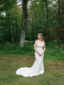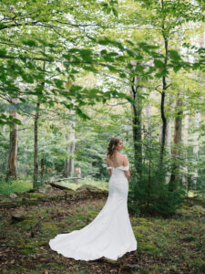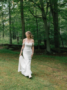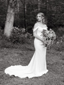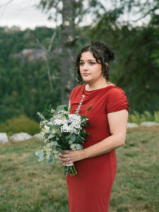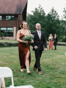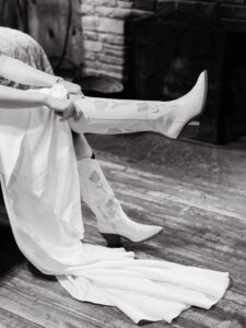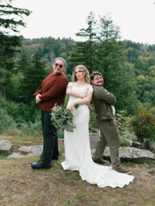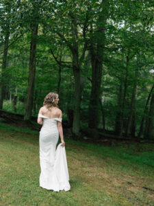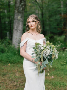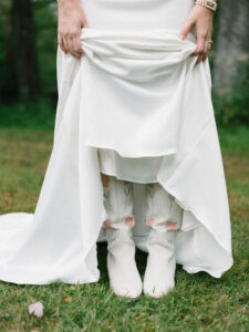 The rain finally slowed down, so we went outside the cabin for bridal portraits and a few wedding party photos! Gabs looked AMAZING – her jewelry was perfect, her dress fit like a glove, and her cowboy boots were the best thing I’ve ever seen. Not to mention the greens of the Appalachian forest are soooo lush and beautiful.