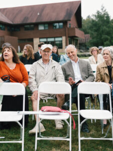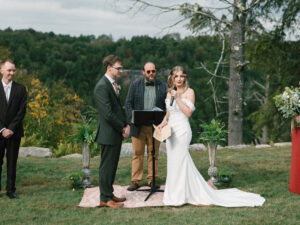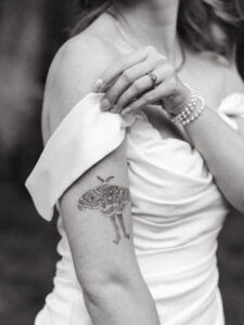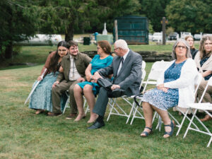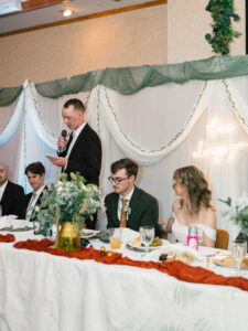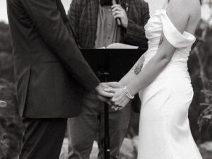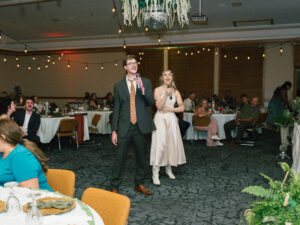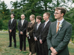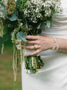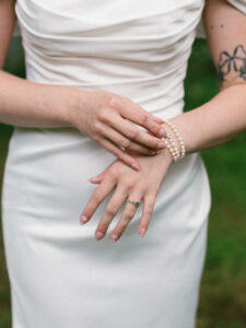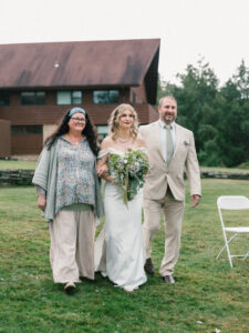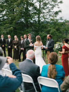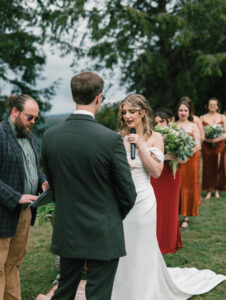 Finally, the guests took their seats, armed with clear umbrellas, and the processional began to an instrumental of “Harvest Moon”. The wedding party and Cam (and me TBH) could not hold back their happy tears as Gabs made her way down the aisle. They both exchanged personal, heartfelt vows as the sun literally parted the clouds over their ceremony! It was a perfect moment. Later, Gabs told me that they also went to a coffee shop that morning. When the woman working there learned they were getting married that day, she said she would pray for the rain to stop during their ceremony. I guess it worked!
