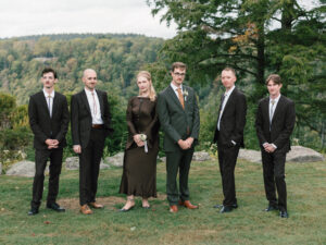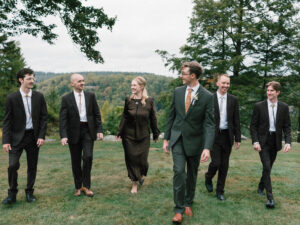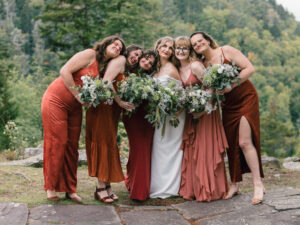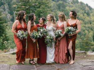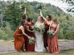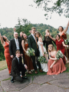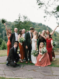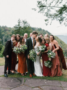 After the ceremony, we ventured to a nearby overlook for family portraits + full wedding party photos. I absolutely LOVE how all of the dress colors look together, especially against the lush green backdrop of the mountains!!!
