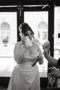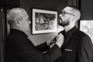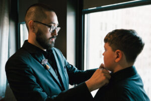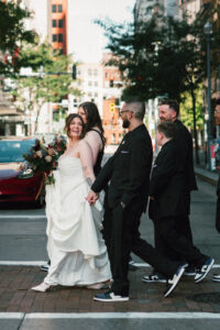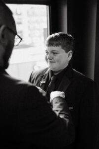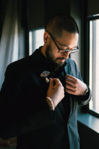 Leah and Chad began their day at The Industrialist Hotel in downtown Pittsburgh. It was an uncharacteristically warm and sunny October day. Earlier that year, I sent them a little care package with a cute matchbook that reminded me of them – to my surprise, they included it in their detail photos!!! I was so happy! I’m also obsessed with their matching pearls – Chad’s were actually a family heirloom. Both L + C spent the morning hanging out with their favorite people and taking it all in.