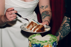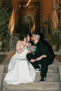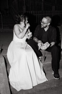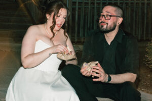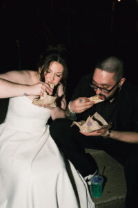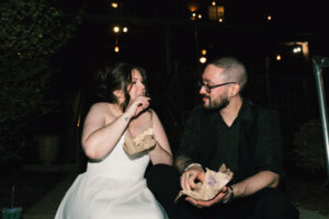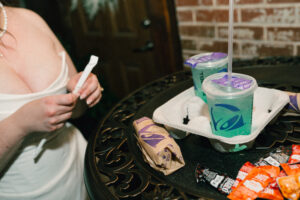 At long last, it was time to throw it back (shots and in the dancing way). Guests of all ages were getting down, letting loose, and even playing some Pokemon with Chad! Near the end of the night, Leah and Chad decided to order some Taco Bell – a frequent fast food stop for them since they have good vegetarian options. They took a quiet moment outside together, basked in the glory of being newly married, and shared some sweet, sweet Baja Blast.