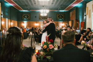 The reception officially began with a wedding party entrance and Leah + Chad’s first dance to “All Your’n” by Tyler Childers (great choice). After a few tear-jerking toasts, a delicious dinner was served by Black Radish. To open the dance floor, Chad danced with his mom and Leah danced with her mom and brother. I tell ya, there wasn’t a single dry eye in the room! These moments are so bittersweet when you’ve lost a parent, and I think everyone in the room felt it.