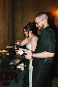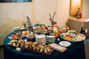 I had to create a dedicated section just for their cocktail hour – Black Radish seriously understood the assignment with their charcuterie and snack displays!!! I live for a foodscape, and everything looked absolutely delicious. Cocktail hour is an often overlooked part of wedding days because usually there are several things going on – all the portraits (family, couple, wedding party), reception set-up, dinner prep, etc. But thankfully, since L + C opted to have all of their photos finished before the ceremony, they got to enjoy it and mingle with guests!