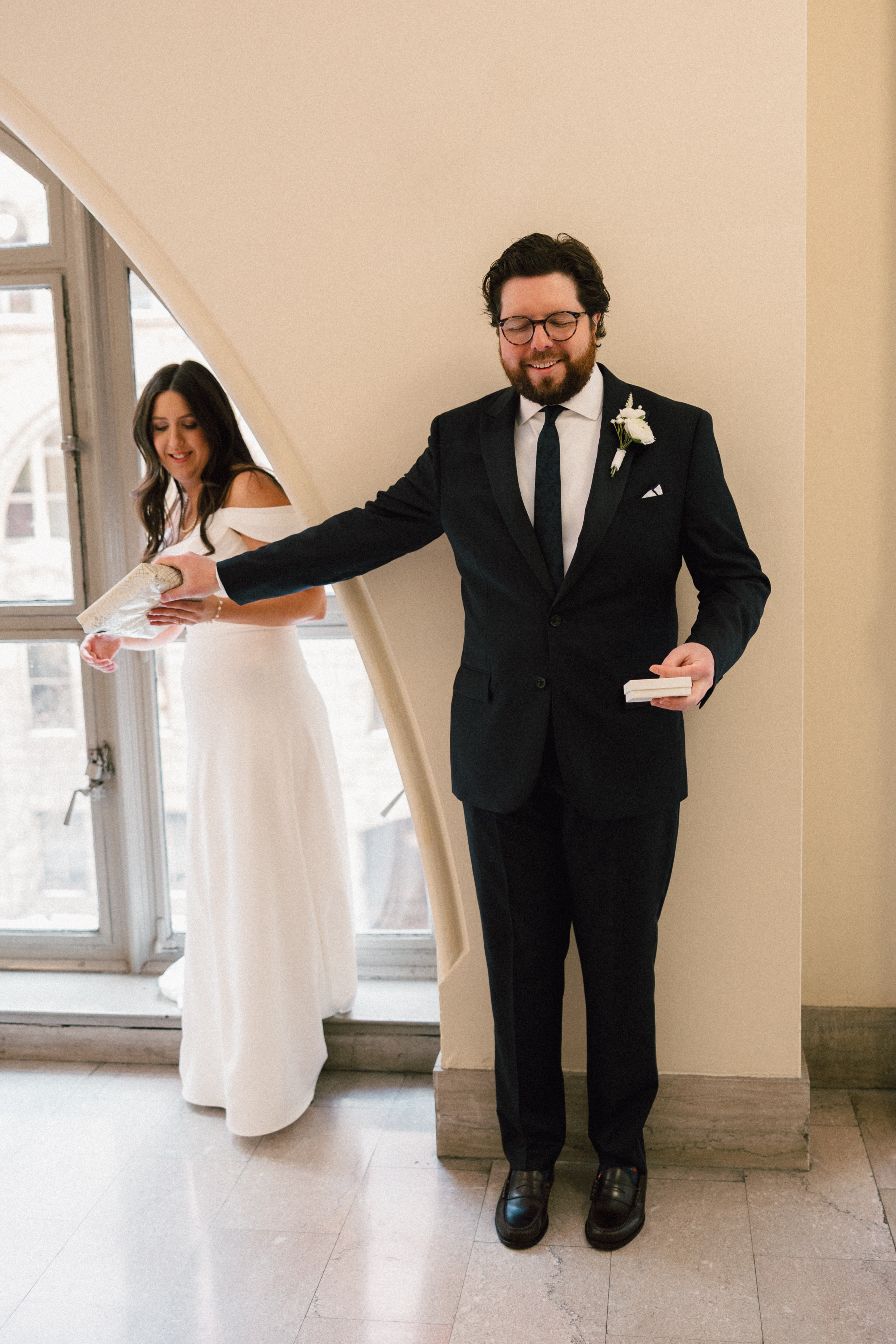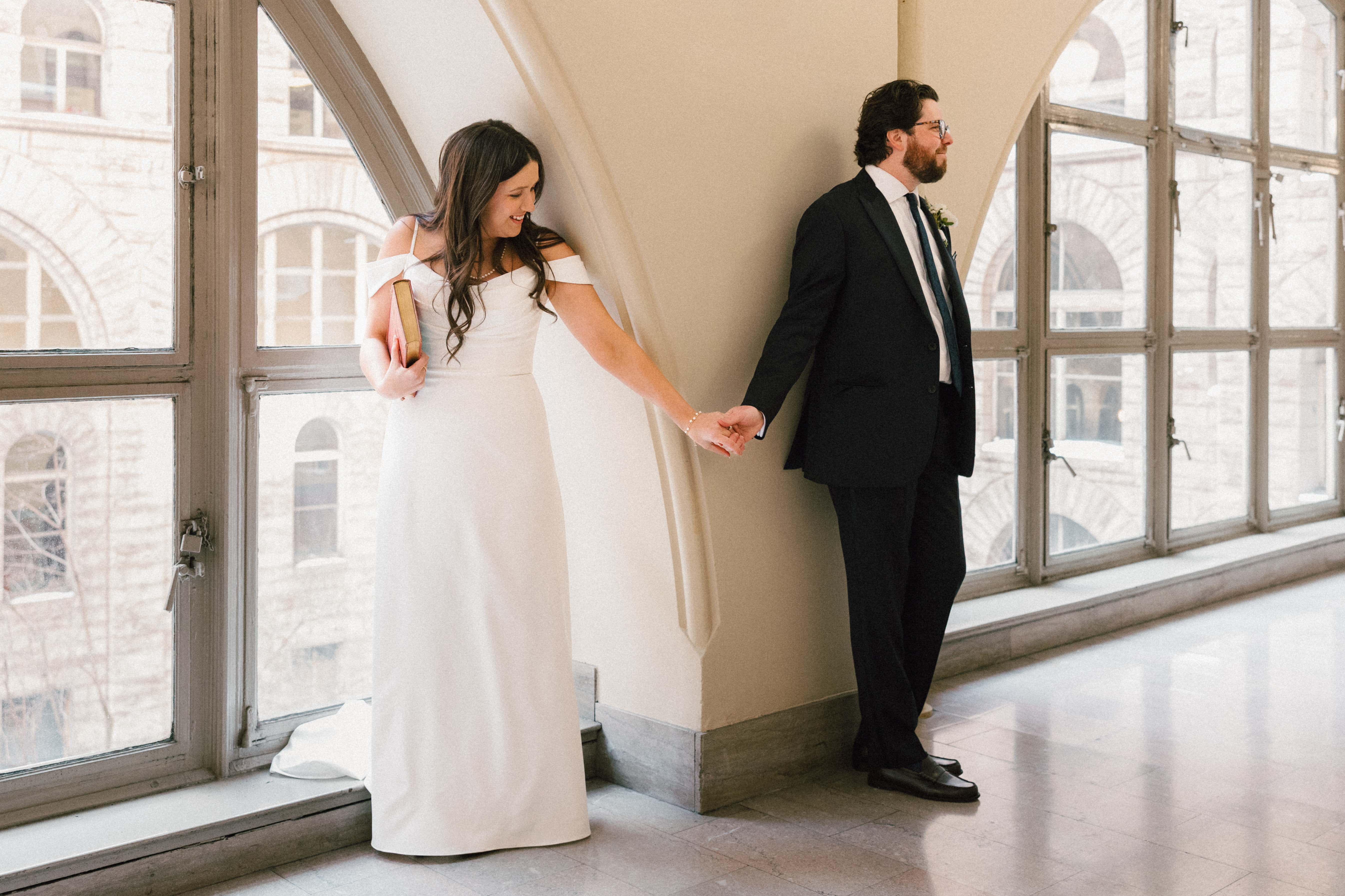 Hannah + Michael’s winter courthouse elopement was a welcome warm moment in the middle of this year’s major snowstorm. Their goal was to gather a few favorite people in an intimate celebration of their relationship up to this point – and fun fact, the day of their elopement (January 30th) was the 2-year anniversary of their first date! Every detail was super intentional, and I loved getting to know these two wonderful humans.