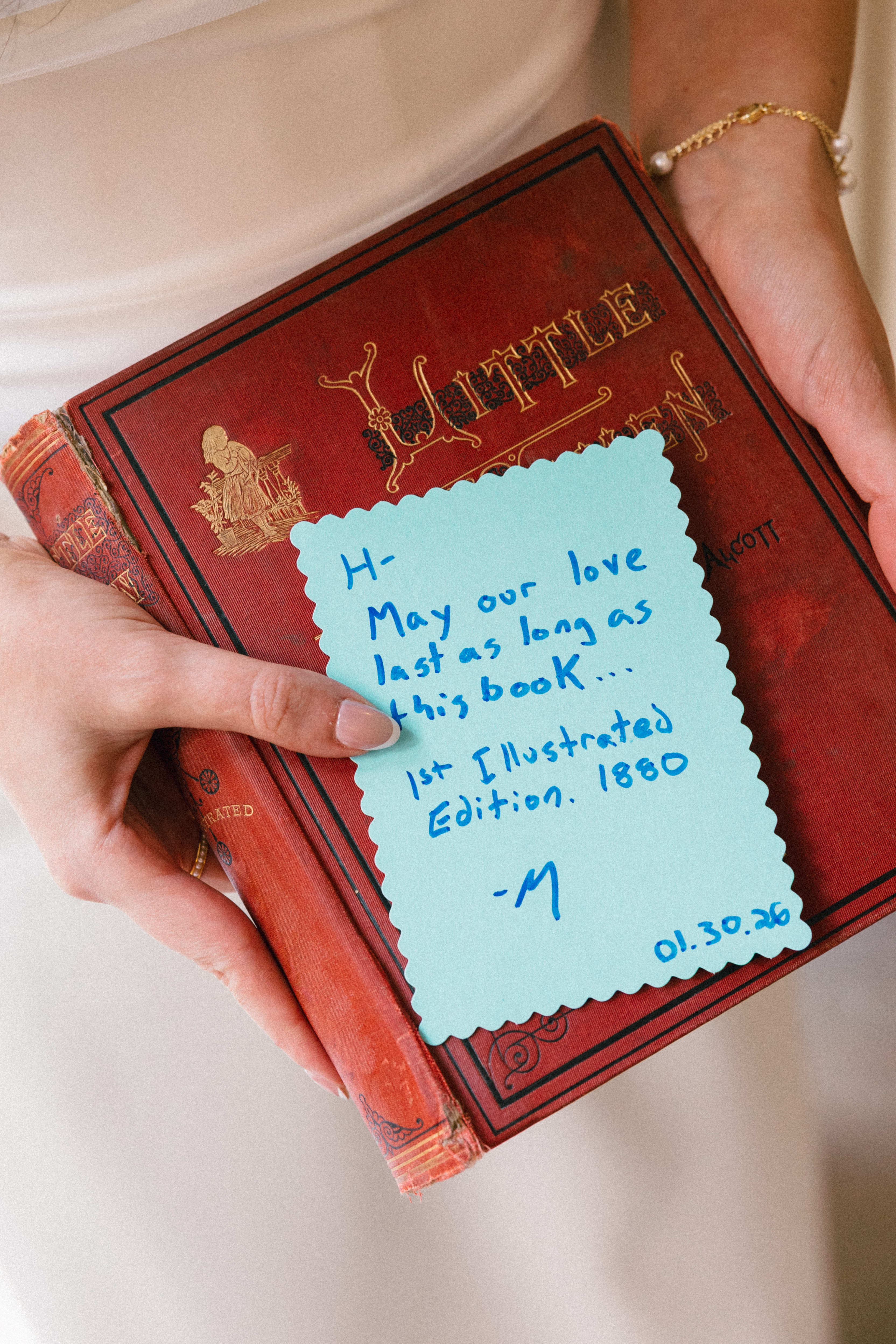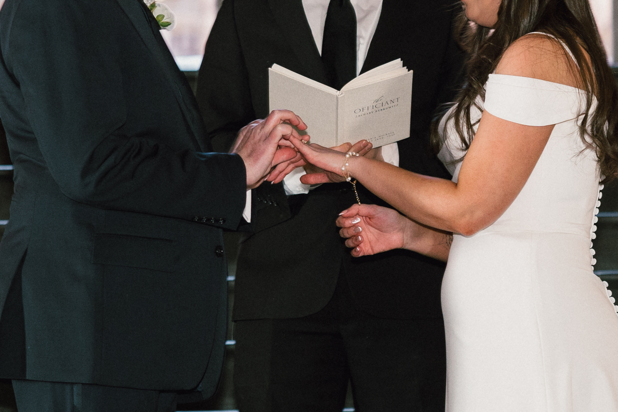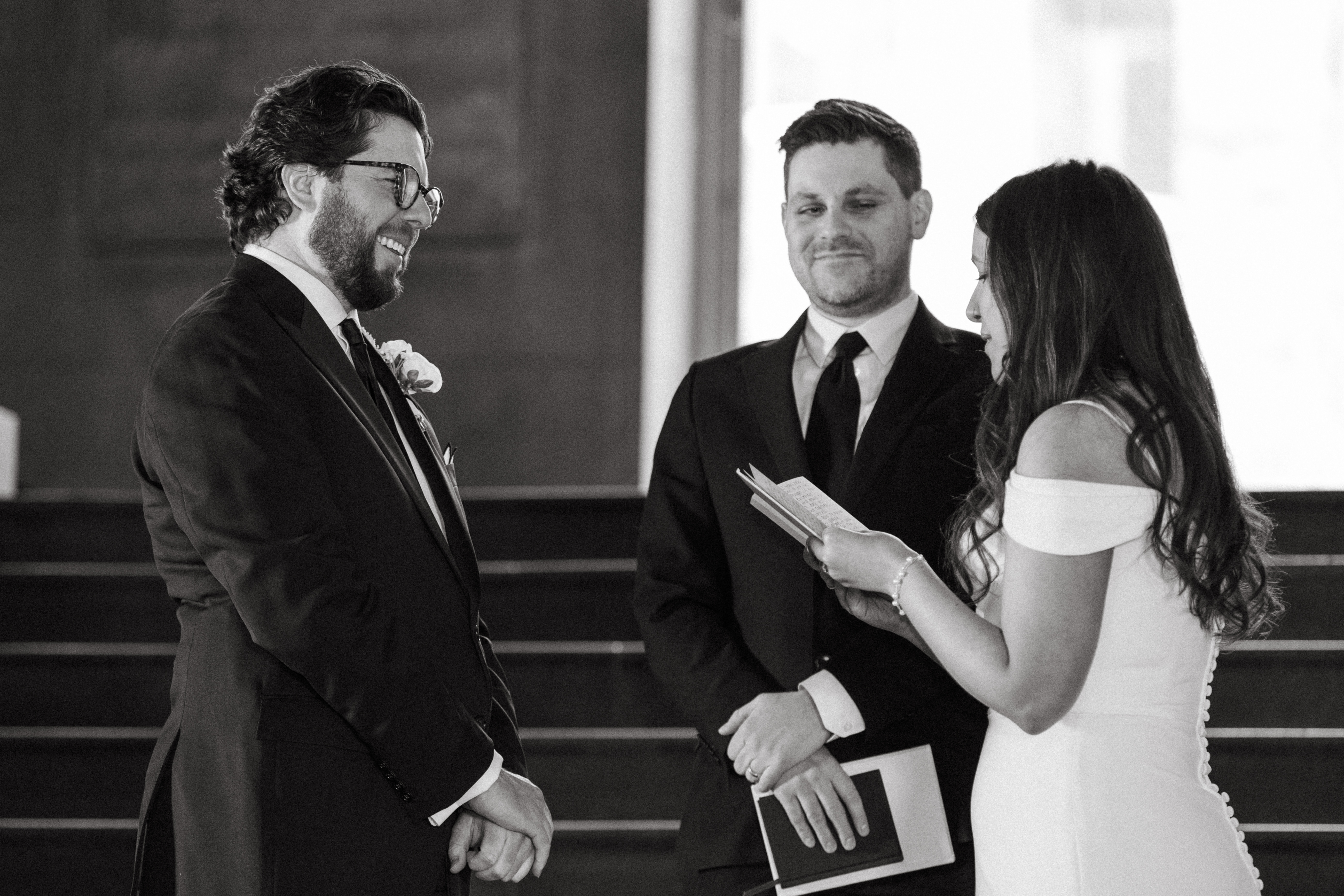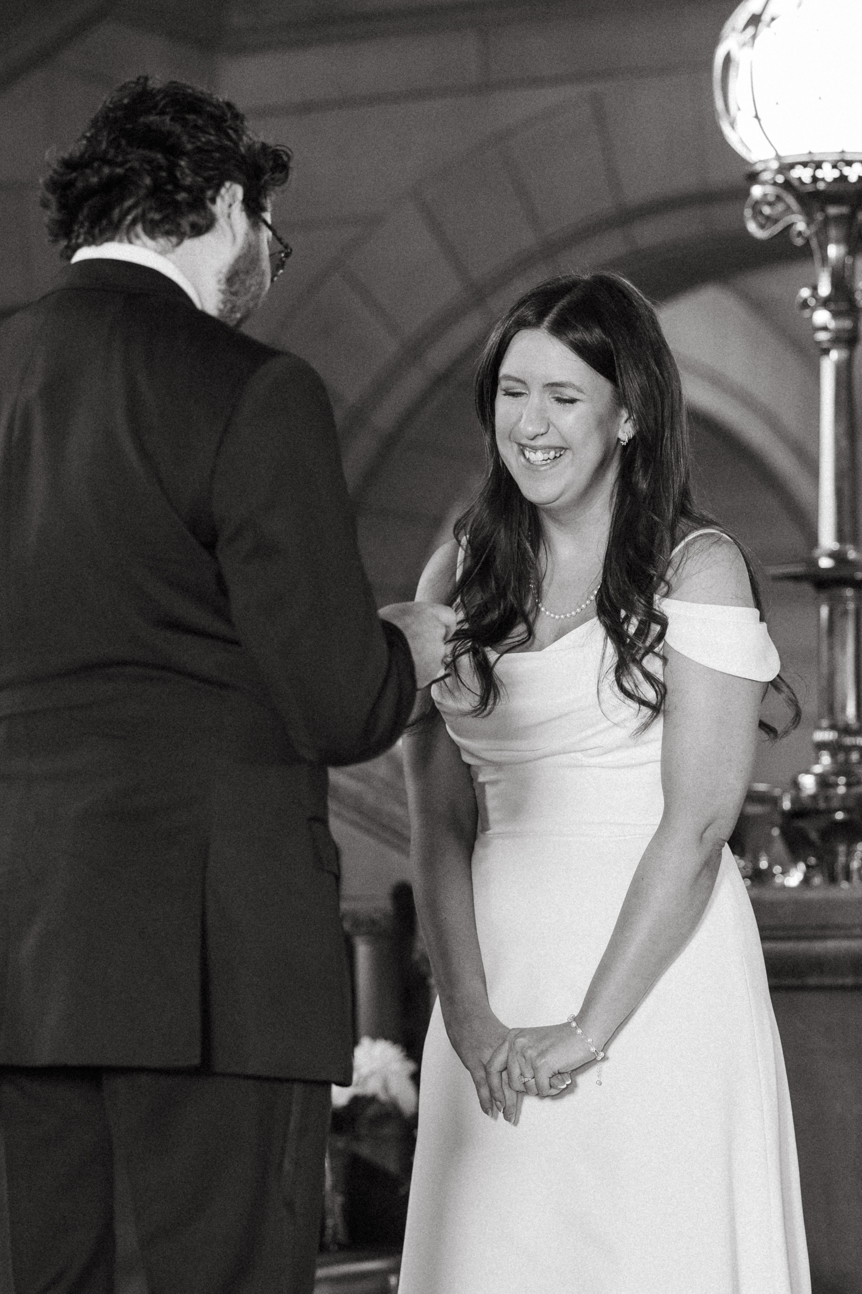 Before the ceremony, Hannah + Michael decided to have a first touch and exchange gifts. A first touch is a great way to have a quiet moment alone together even if you don’t want to see each other before you walk down the aisle! Hannah got Michael custom engraved collar stays, and Michael got Hannah a literal FIRST EDITION COPY of Little Women! Hannah collects Little Women books, so this was one of the most thoughtful wedding gifts I’ve ever seen!