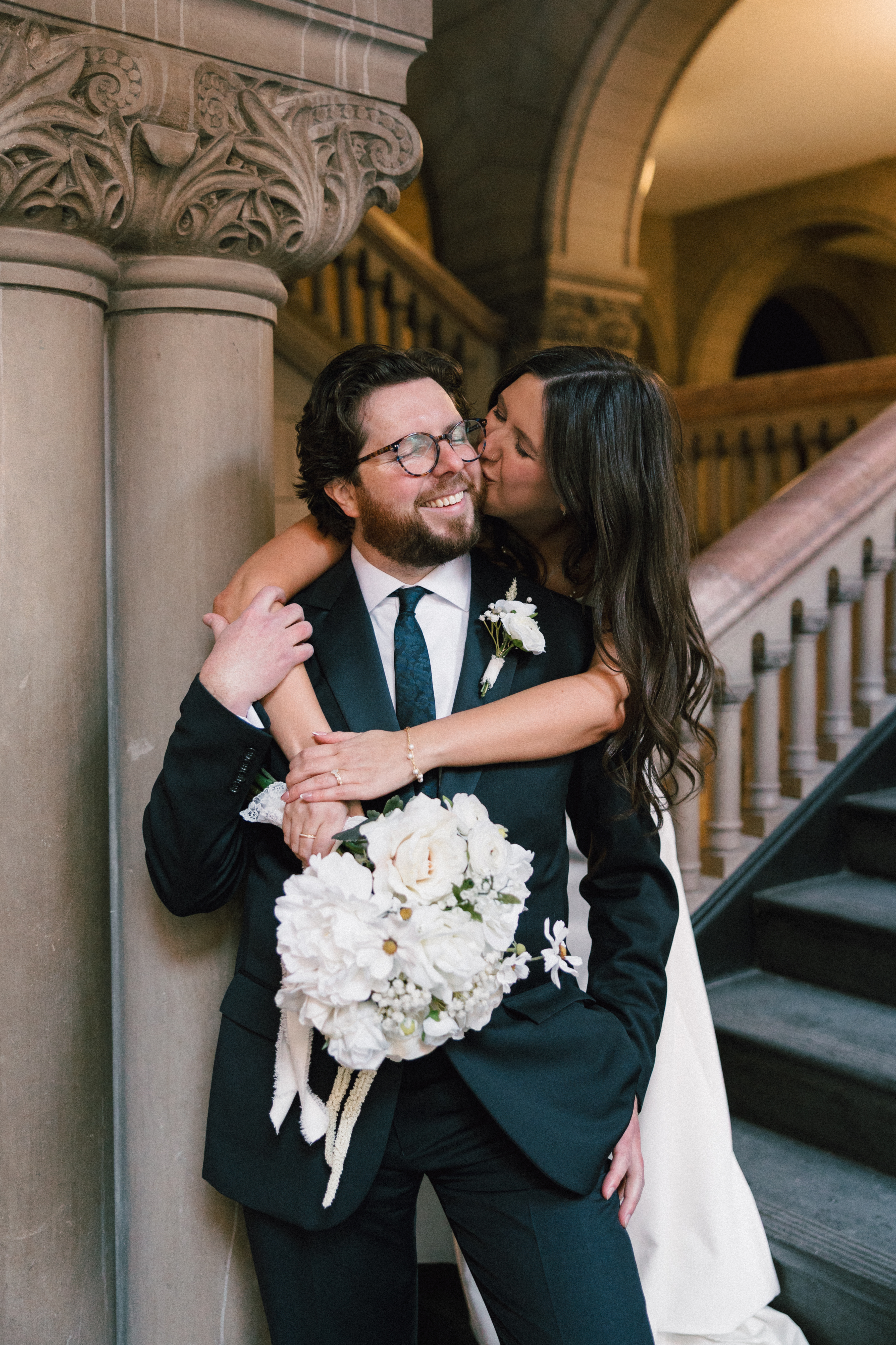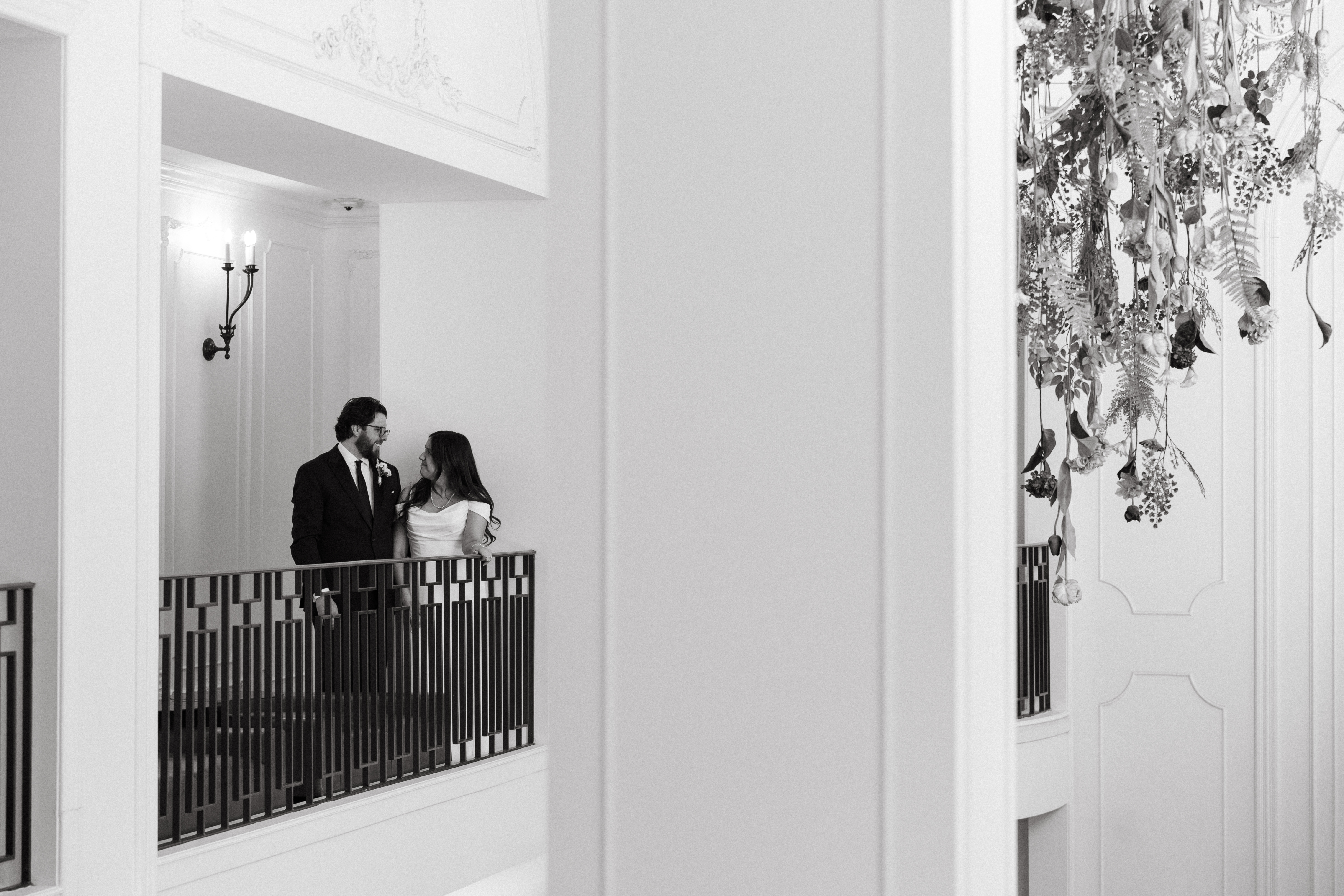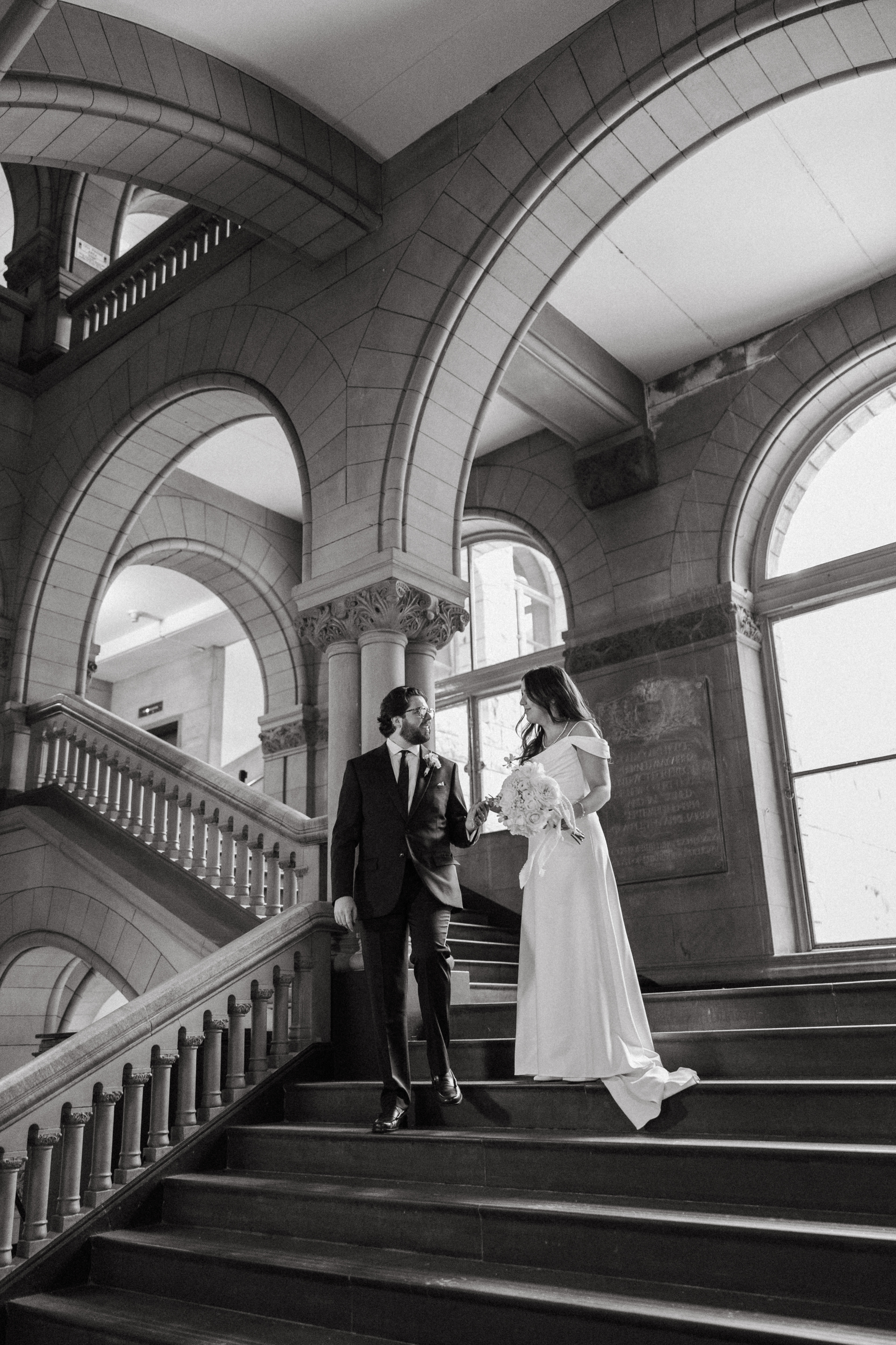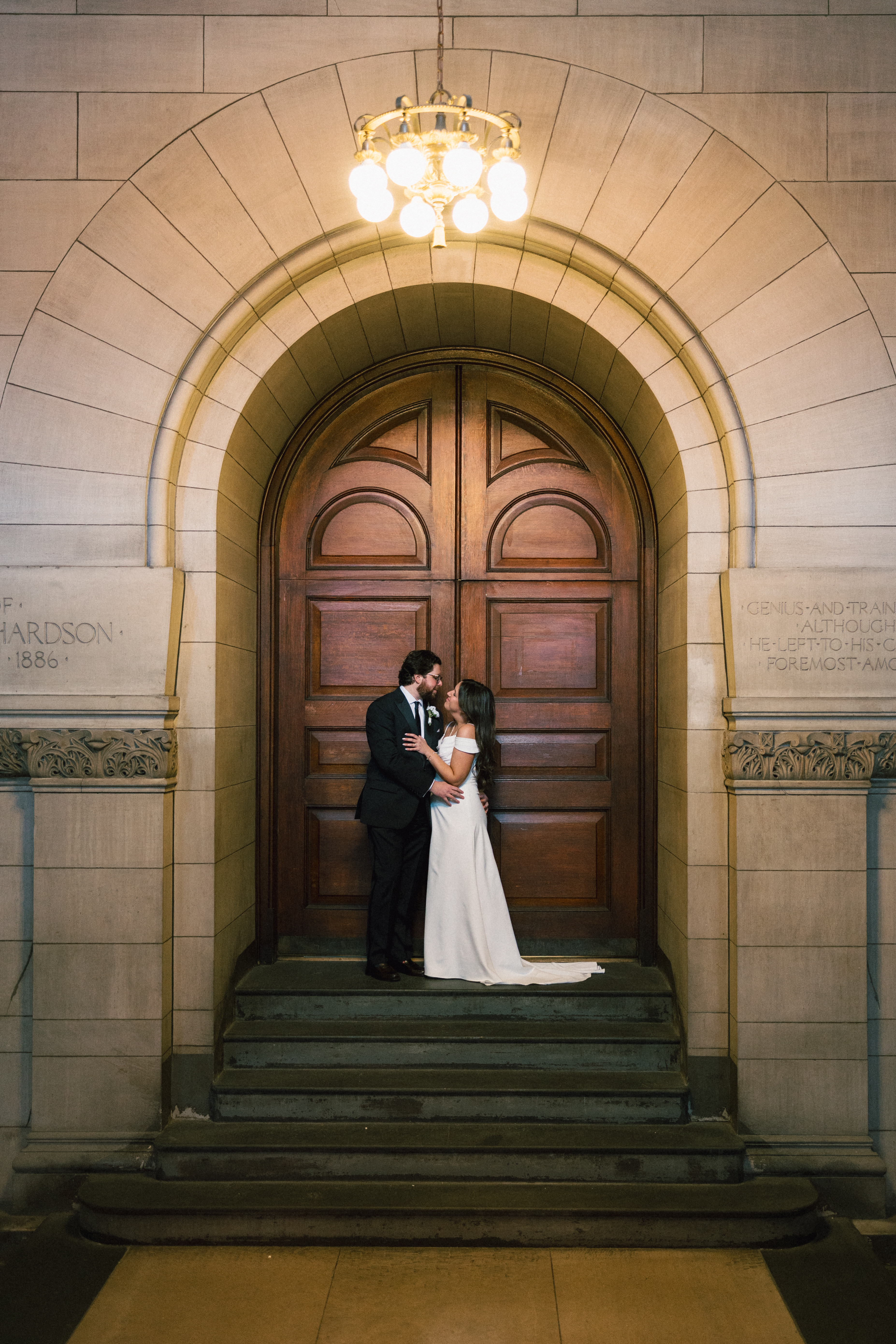 After exchanging personally written vows and rings, it was official! We snapped a few family portraits and finally had the courthouse to ourselves for some alone time. Hannah + Michael wanted as many portraits as possible, so we took our time exploring the courthouse architecture, playing piano, and laughing it up. One of my personal favorite spots is in front of the giant wooden doors on the third floor. It’s super dramatic and really encapsulates the courthouse vibe of it all!