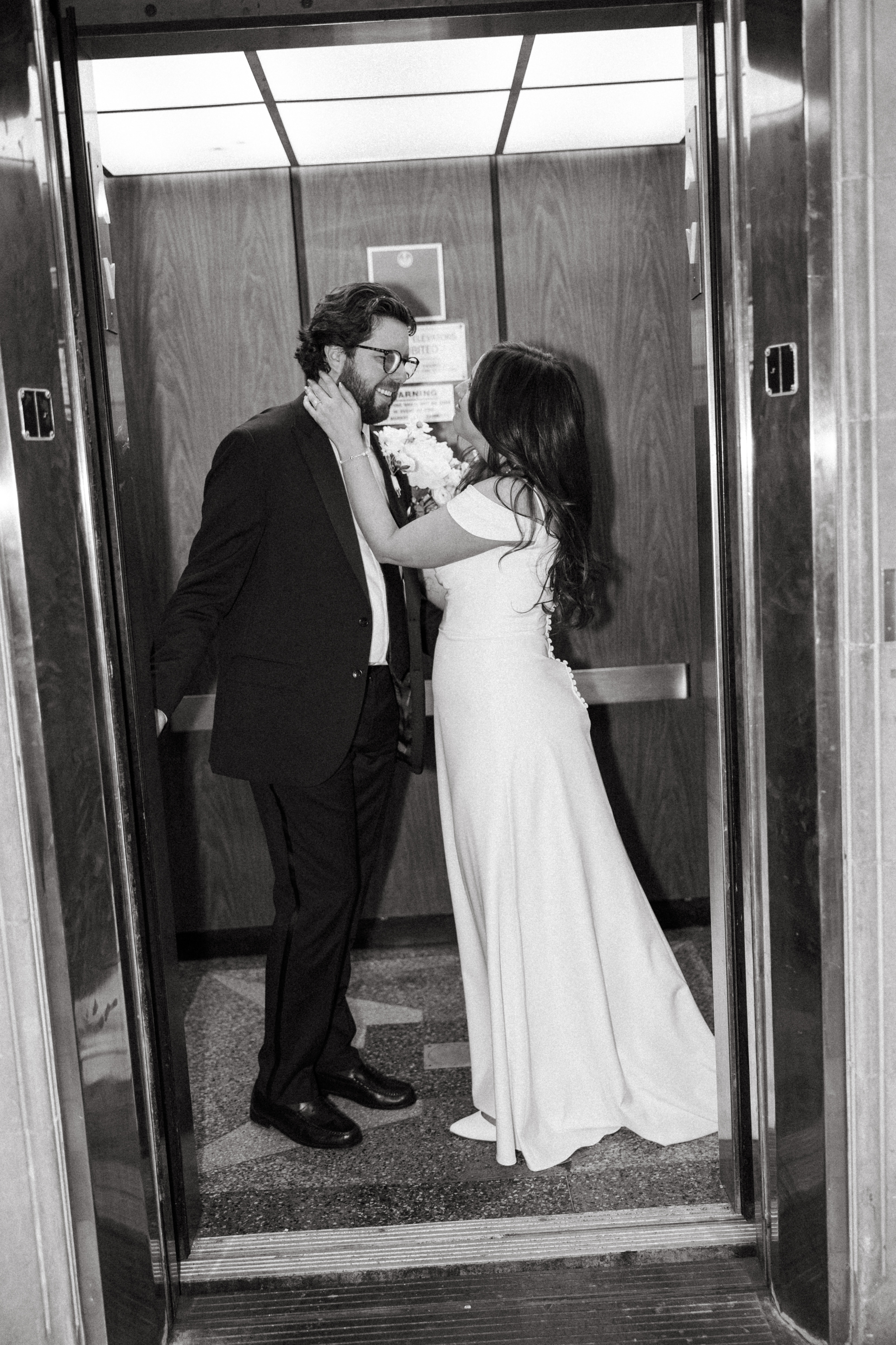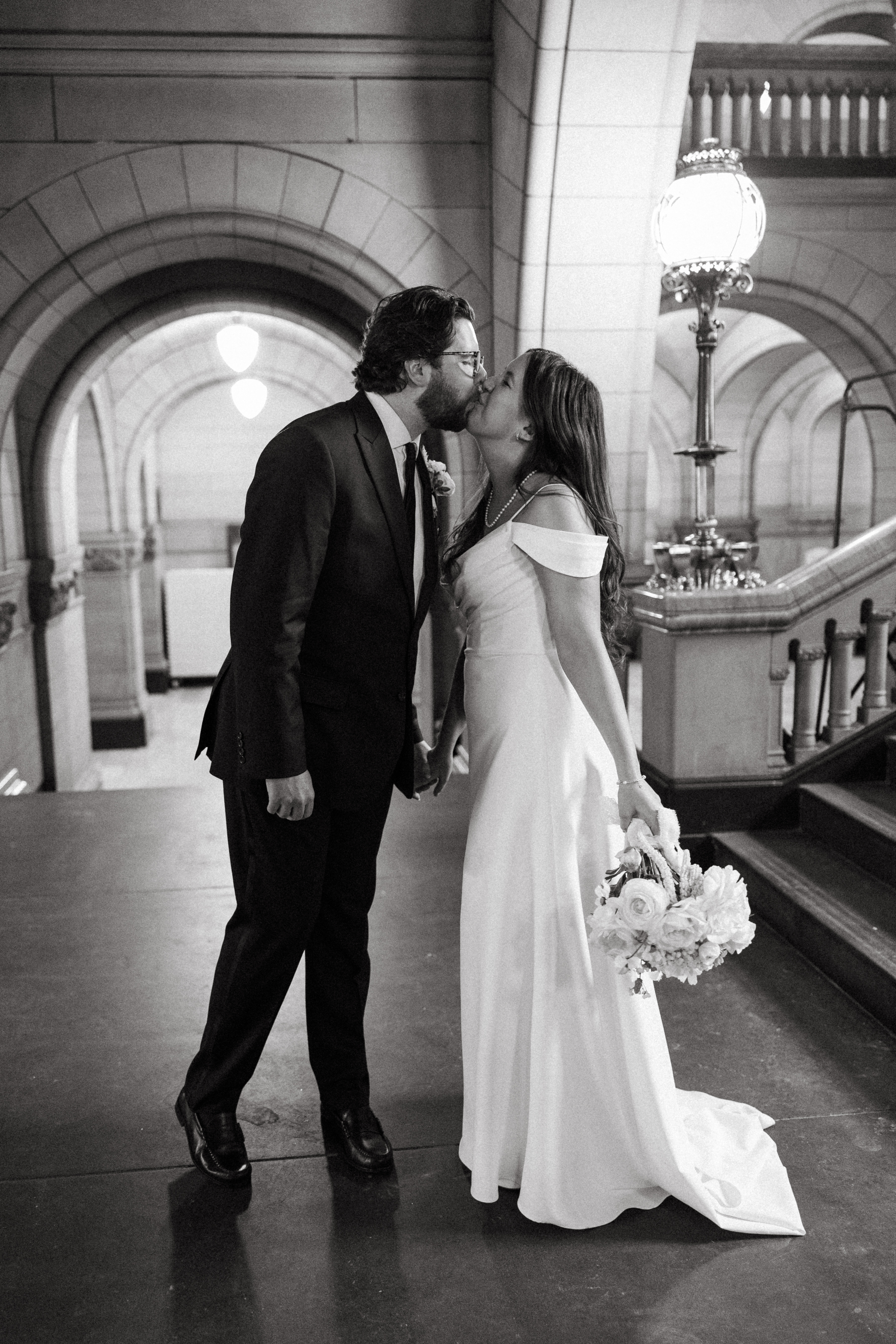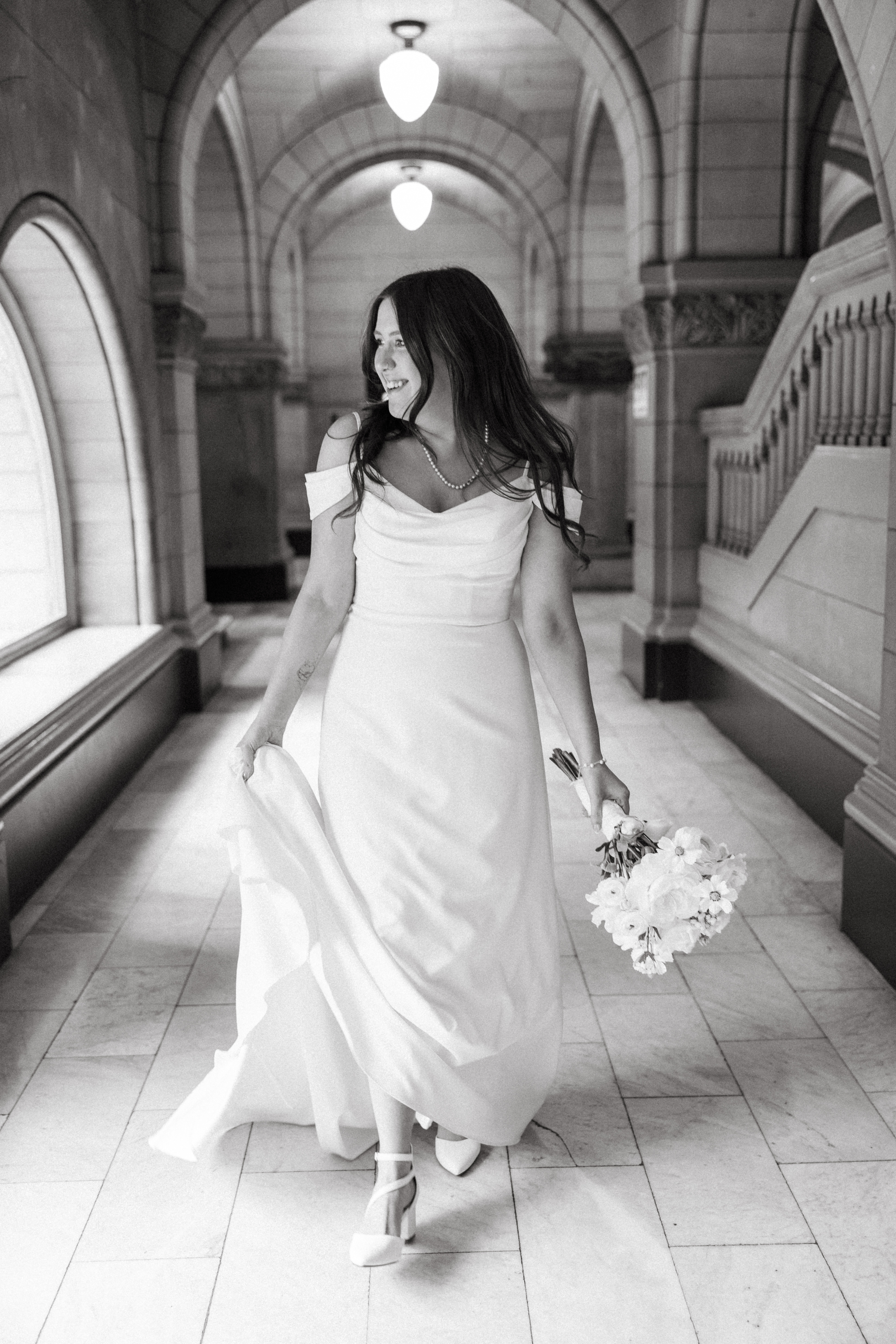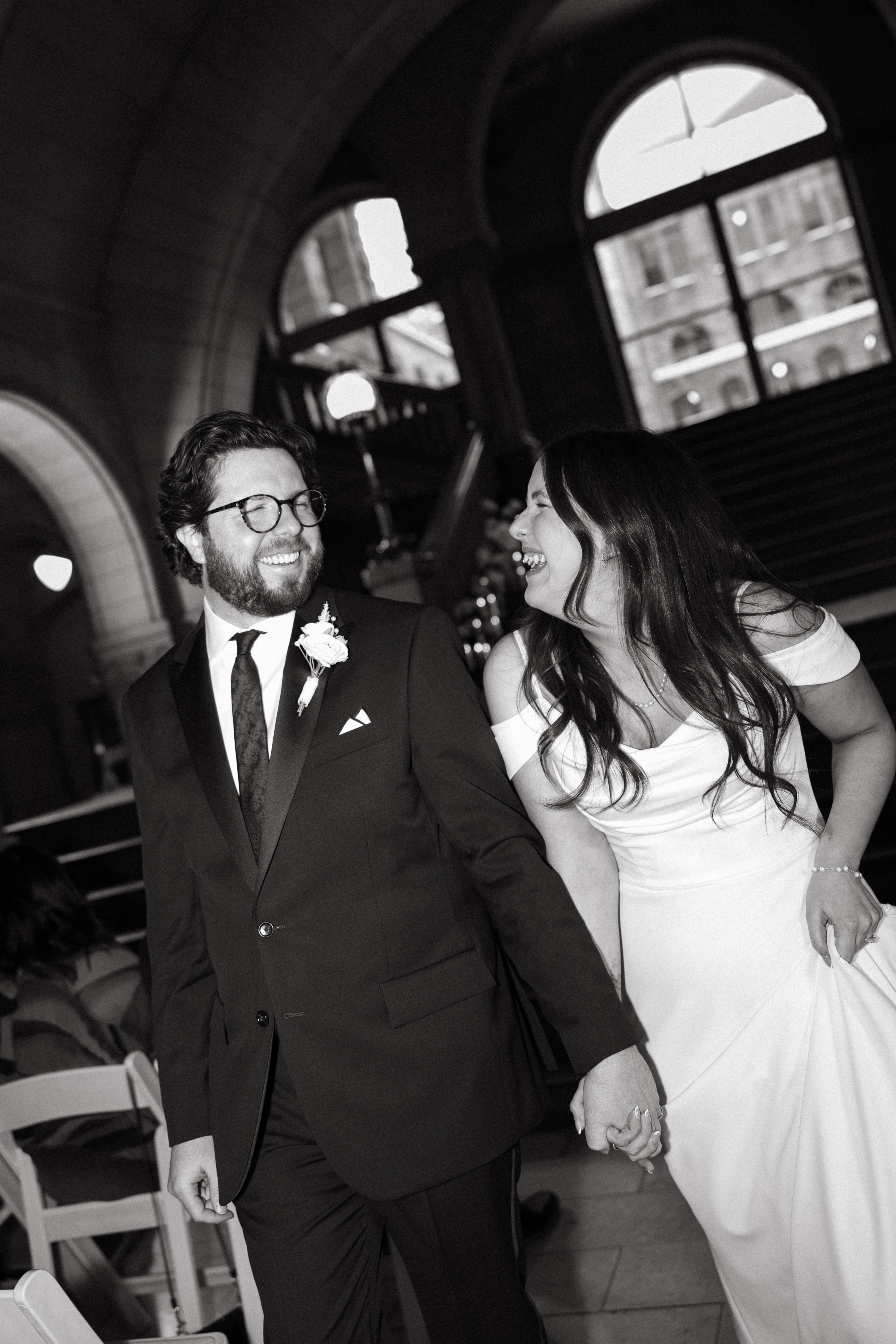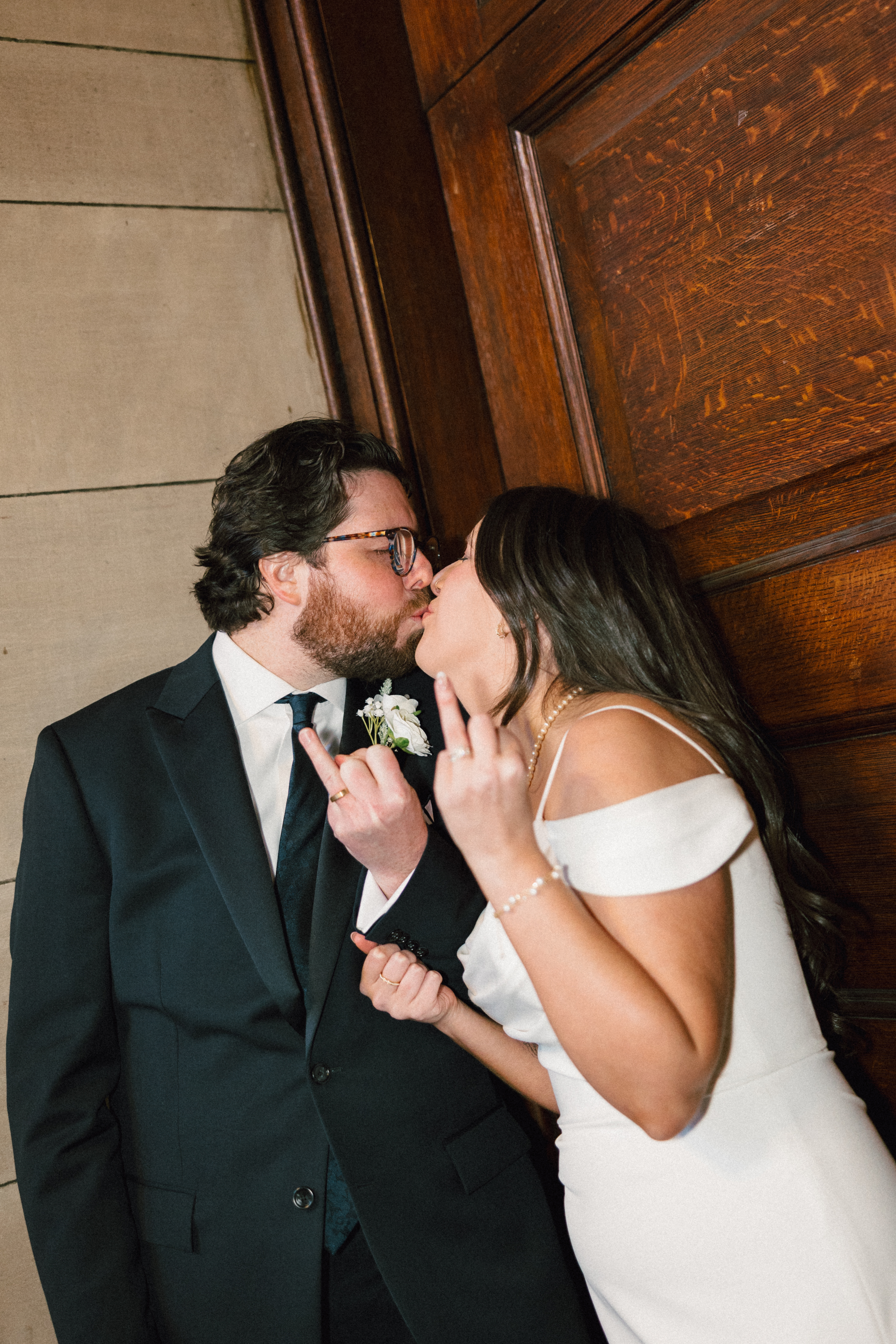 After exchanging personally written vows and rings, it was official! We snapped a few family portraits and finally had the courthouse to ourselves for some alone time. Hannah + Michael wanted as many portraits as possible, so we took our time exploring the courthouse architecture, playing piano, and laughing it up. One of my personal favorite spots is in front of the giant wooden doors on the third floor. It’s super dramatic and really encapsulates the courthouse vibe of it all!