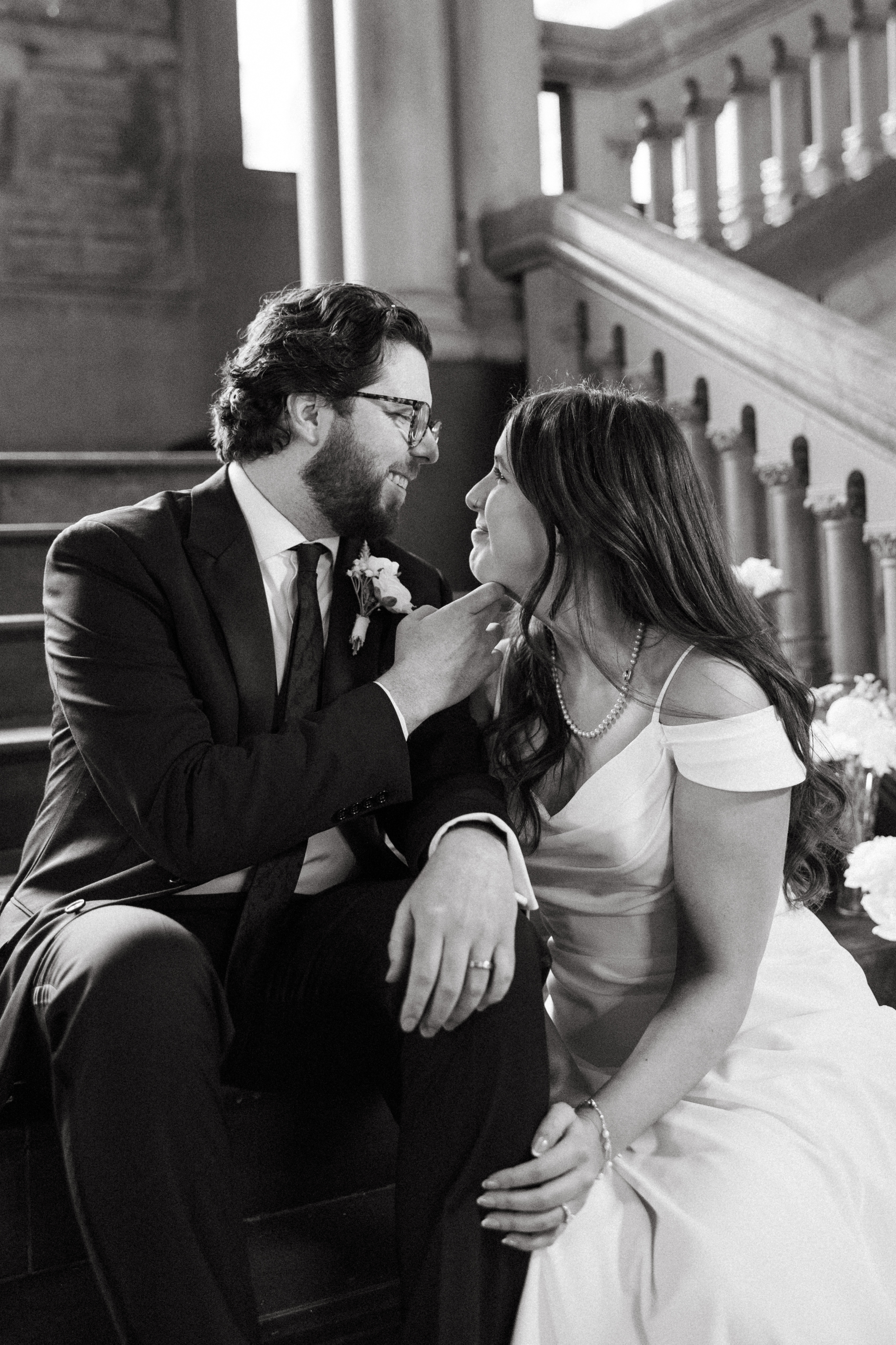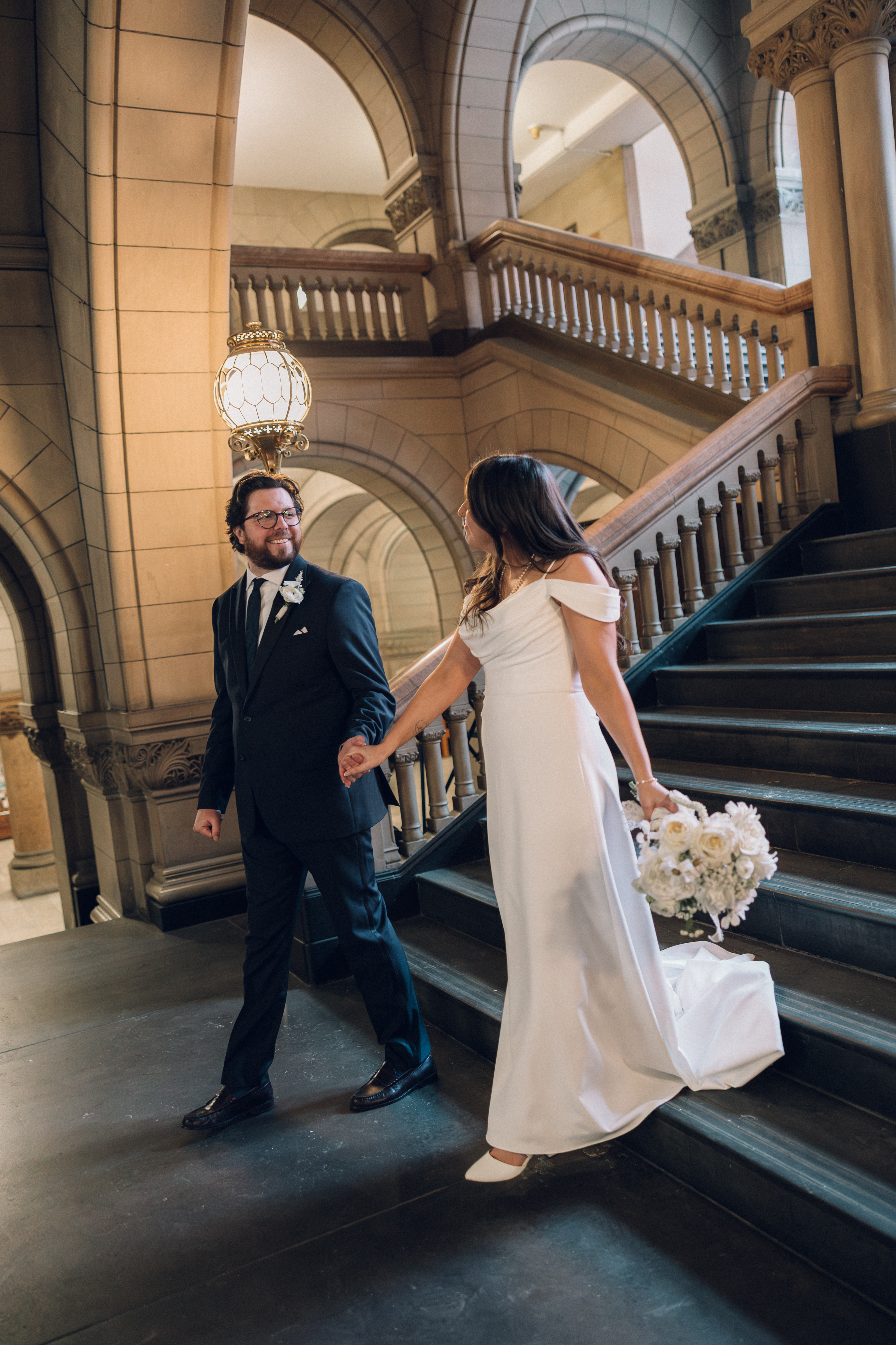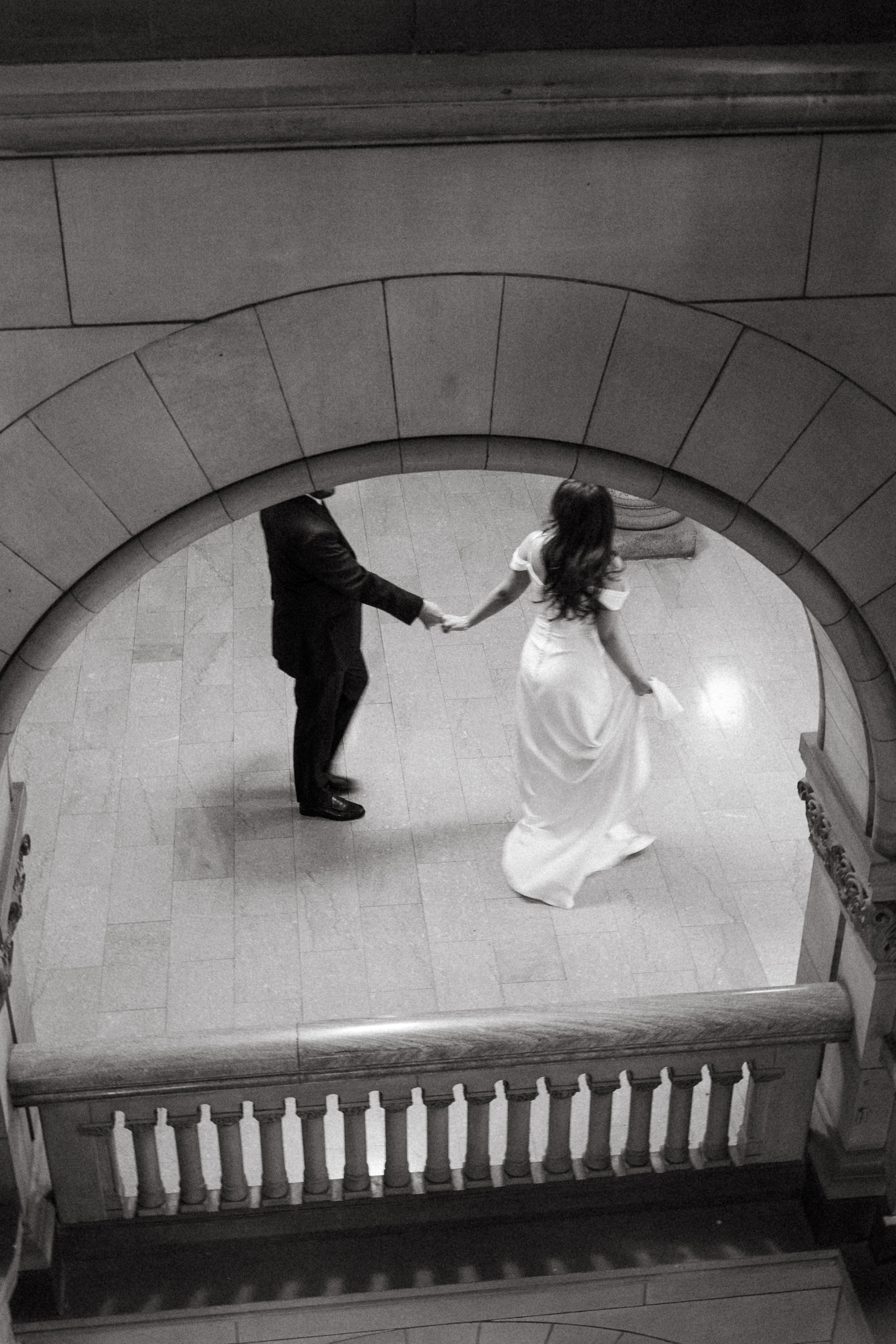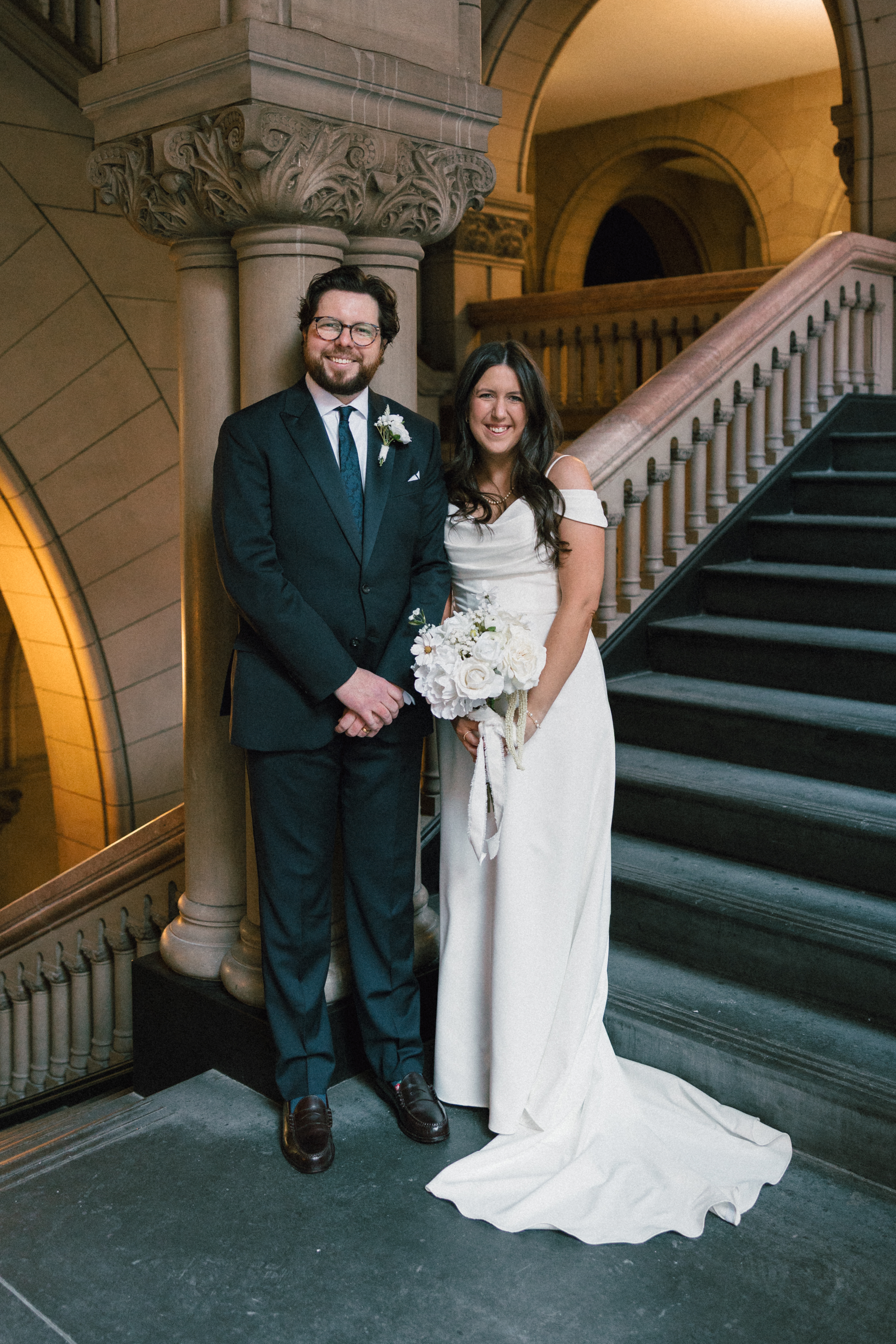 After exchanging personally written vows and rings, it was official! We snapped a few family portraits and finally had the courthouse to ourselves for some alone time. Hannah + Michael wanted as many portraits as possible, so we took our time exploring the courthouse architecture, playing piano, and laughing it up. One of my personal favorite spots is in front of the giant wooden doors on the third floor. It’s super dramatic and really encapsulates the courthouse vibe of it all!