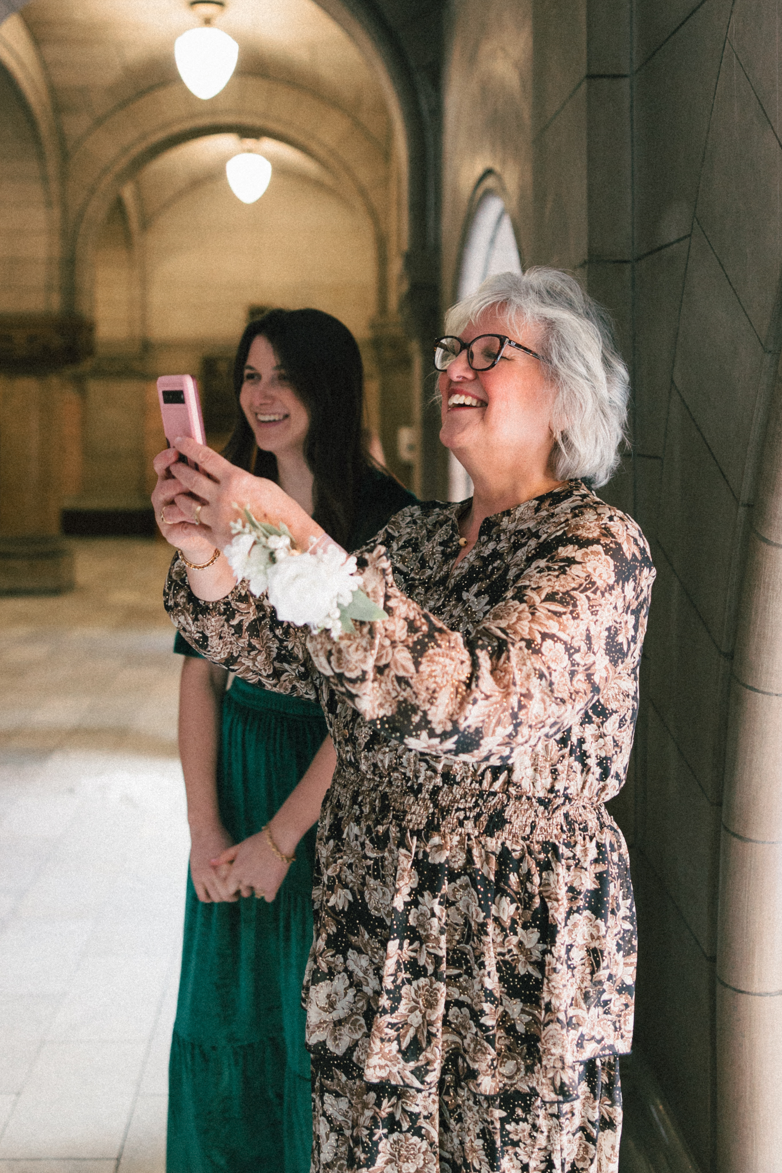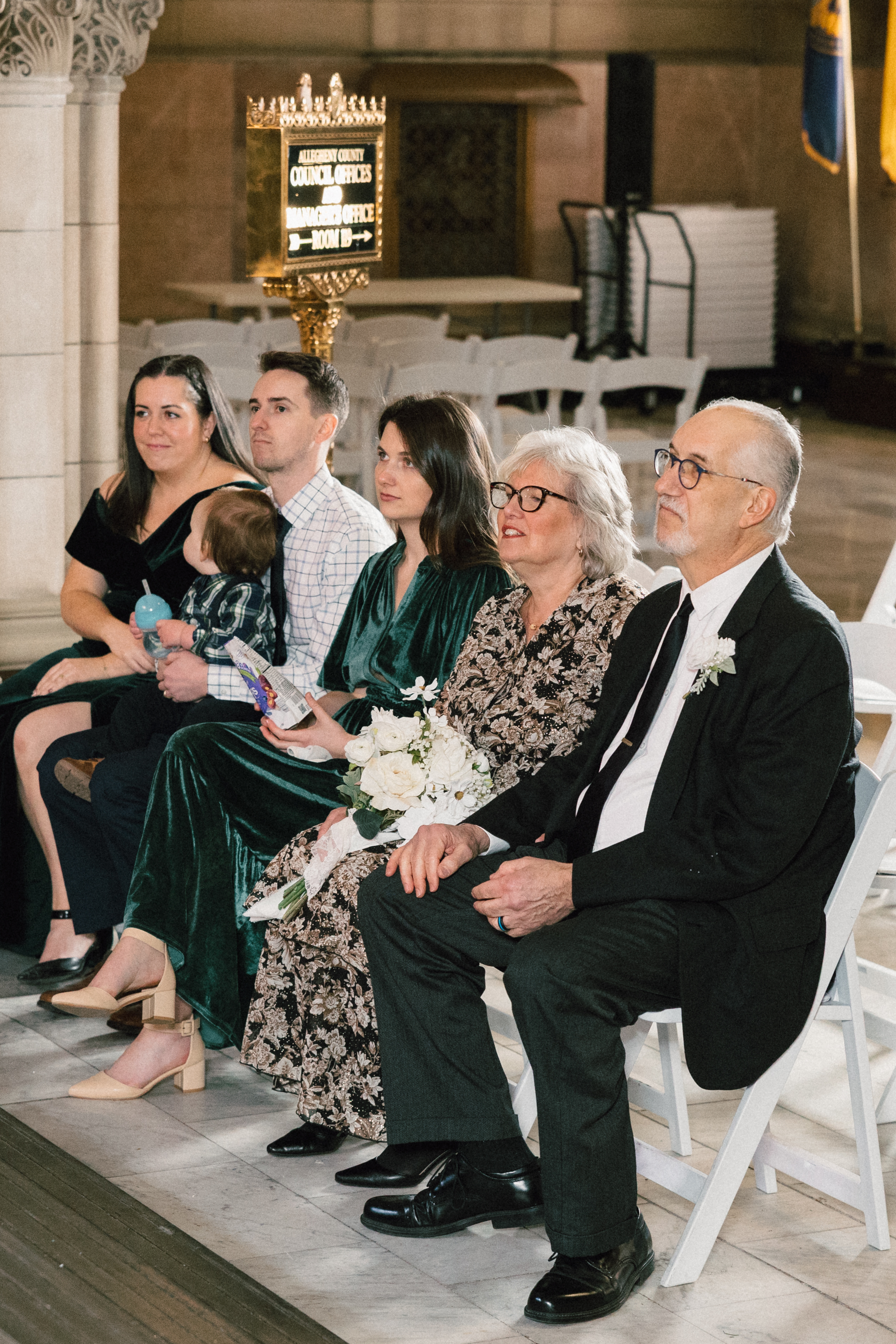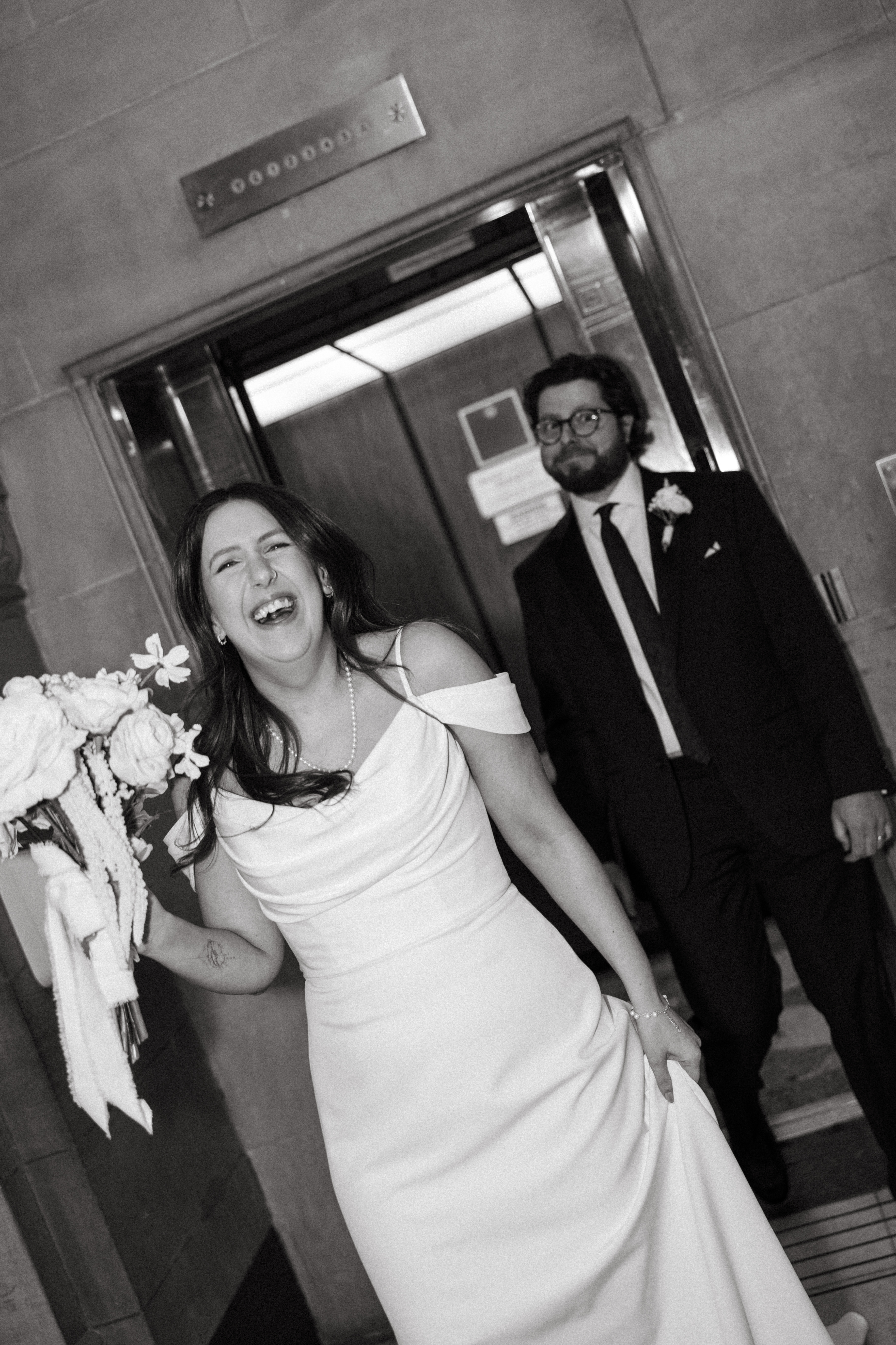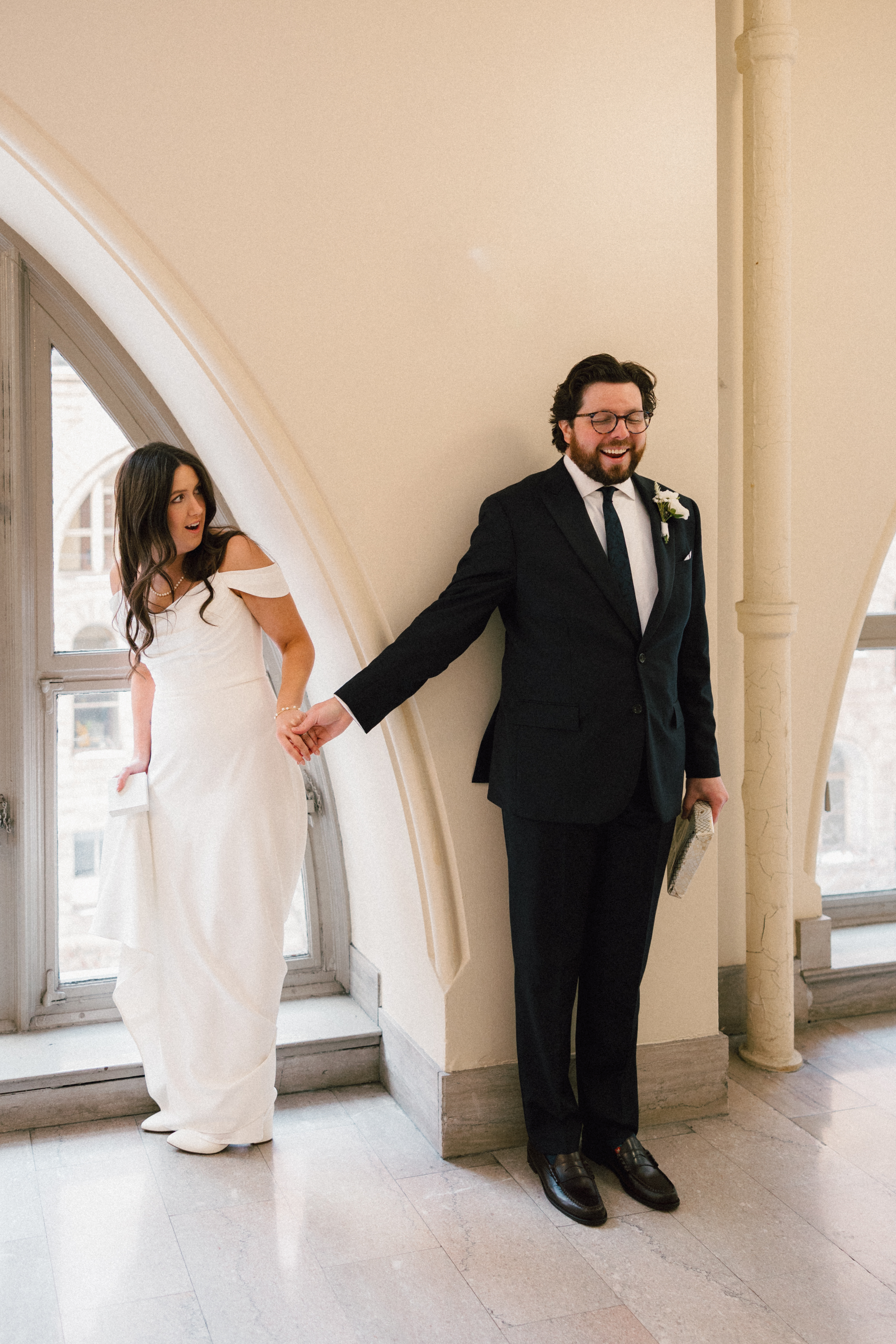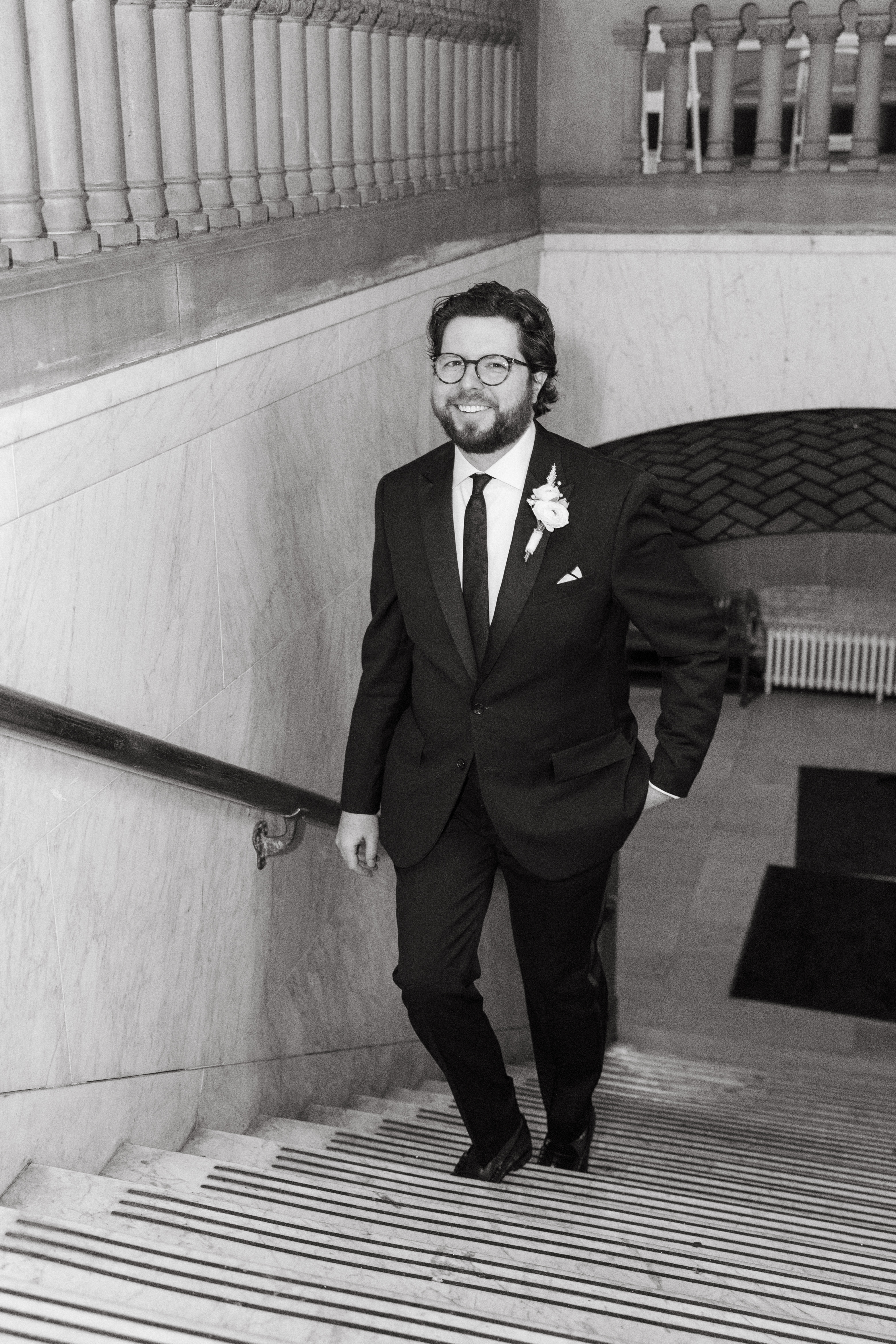 After exchanging personally written vows and rings, it was official! We snapped a few family portraits and finally had the courthouse to ourselves for some alone time. Hannah + Michael wanted as many portraits as possible, so we took our time exploring the courthouse architecture, playing piano, and laughing it up. One of my personal favorite spots is in front of the giant wooden doors on the third floor. It’s super dramatic and really encapsulates the courthouse vibe of it all!