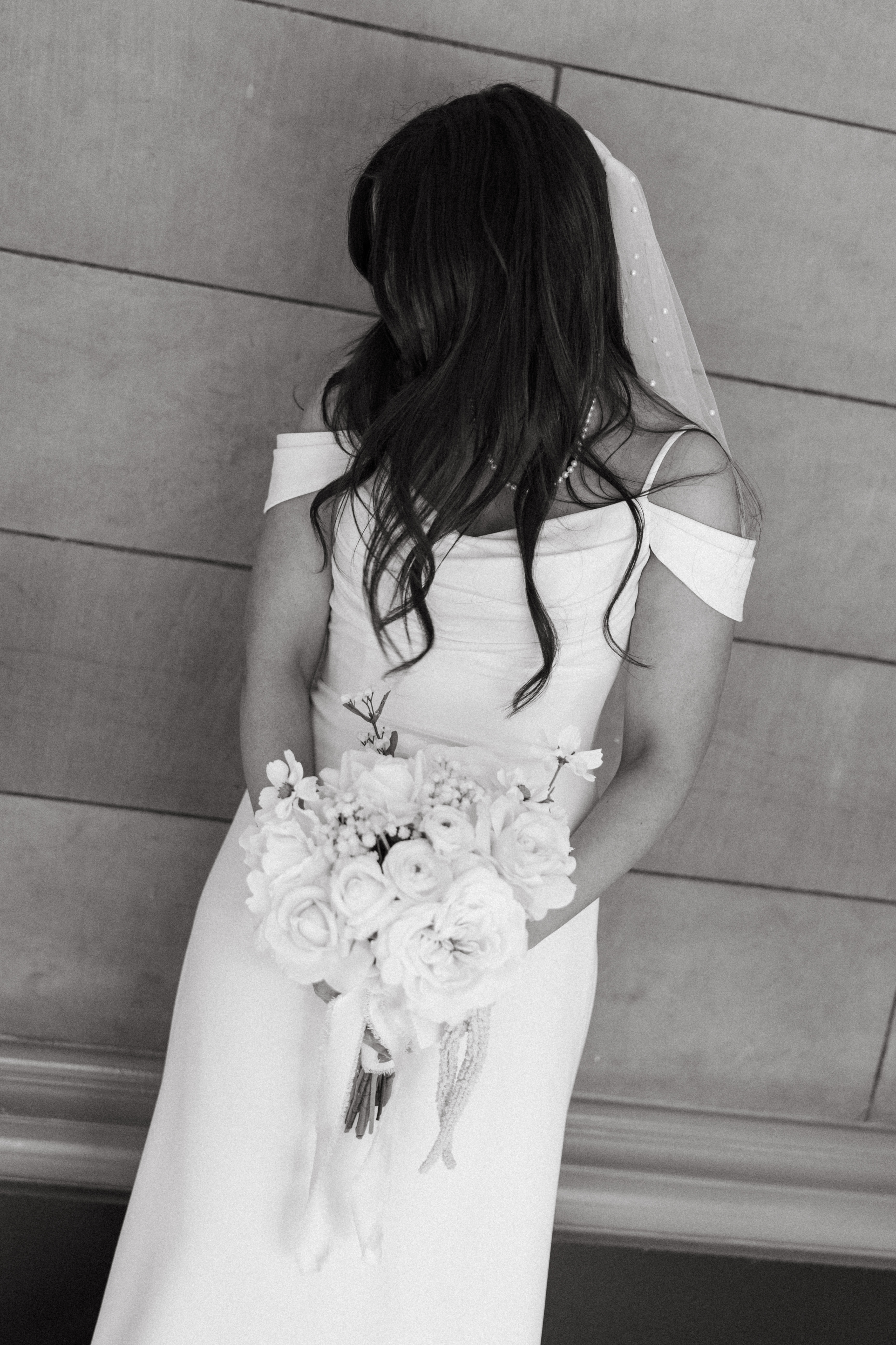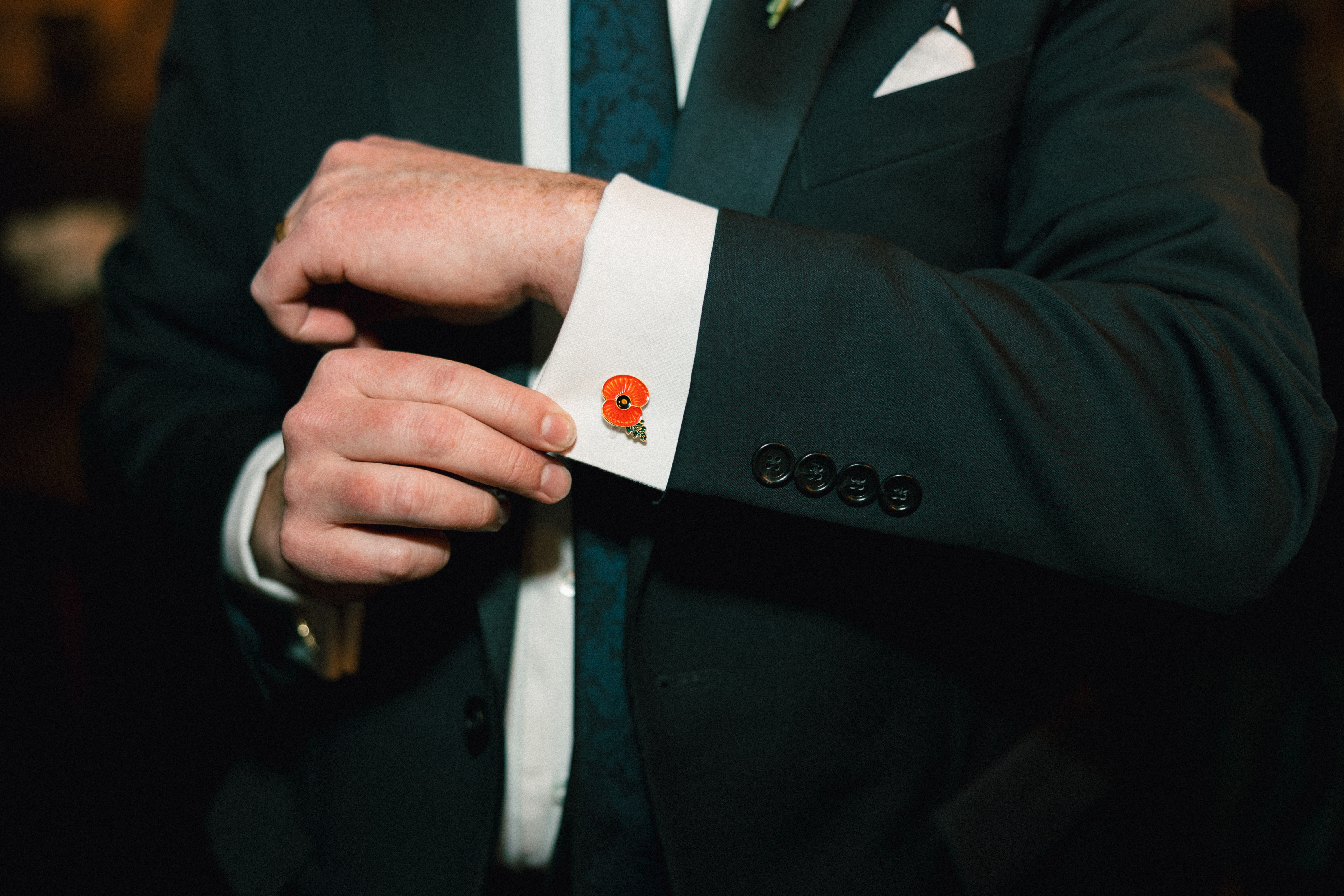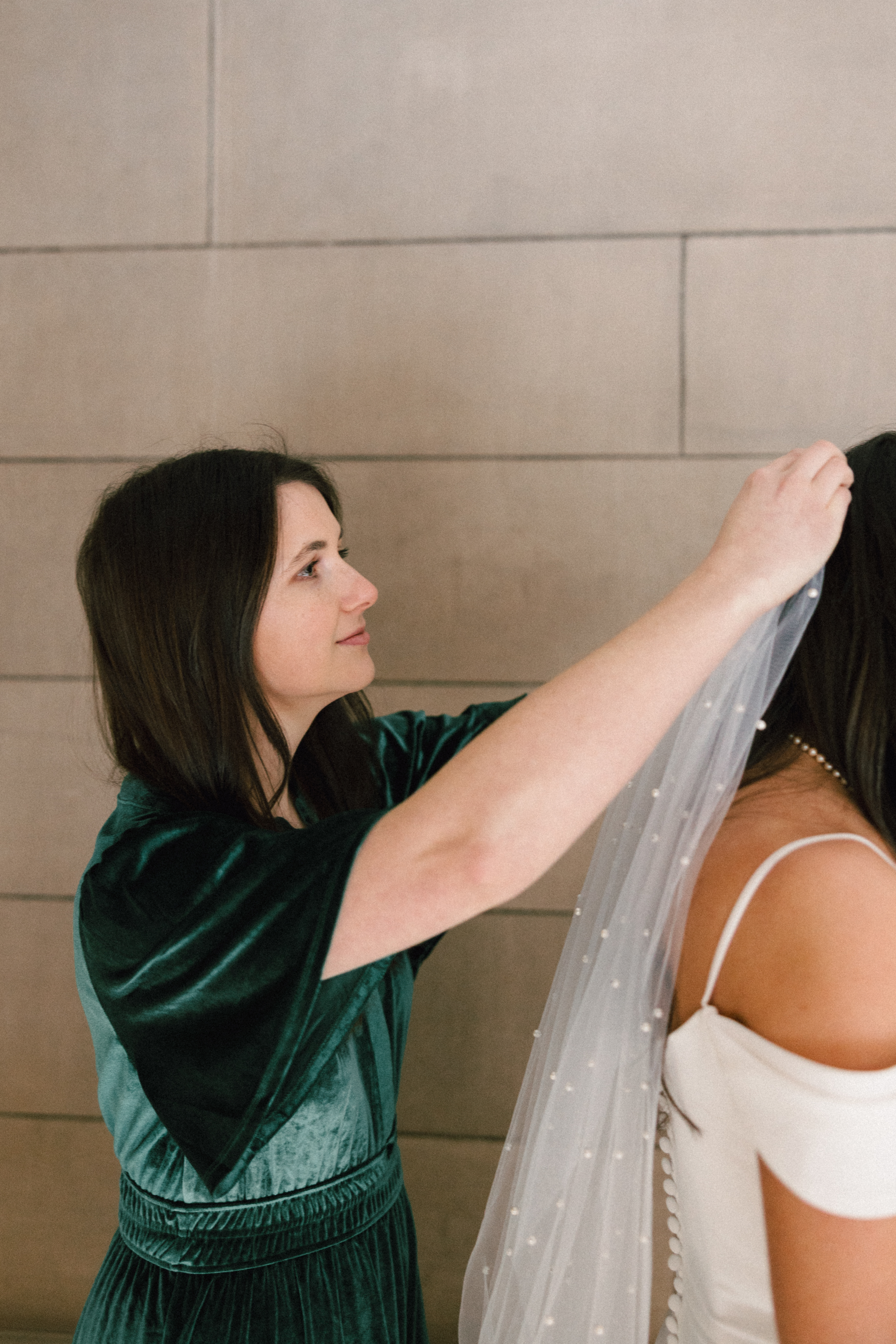 Hannah’s mom and sister helped put on some finishing touches, including her pearly veil and matching pearl necklace. Her dress was beautifully modern and minimalistic – an amazing find from my friends at Bridal Maven. She even DIY’ed all the faux florals! Michael donned a navy suit + tie with sweet poppy cufflinks and a checkered suspender surprise. In his words, “We’re bringing back ska!”