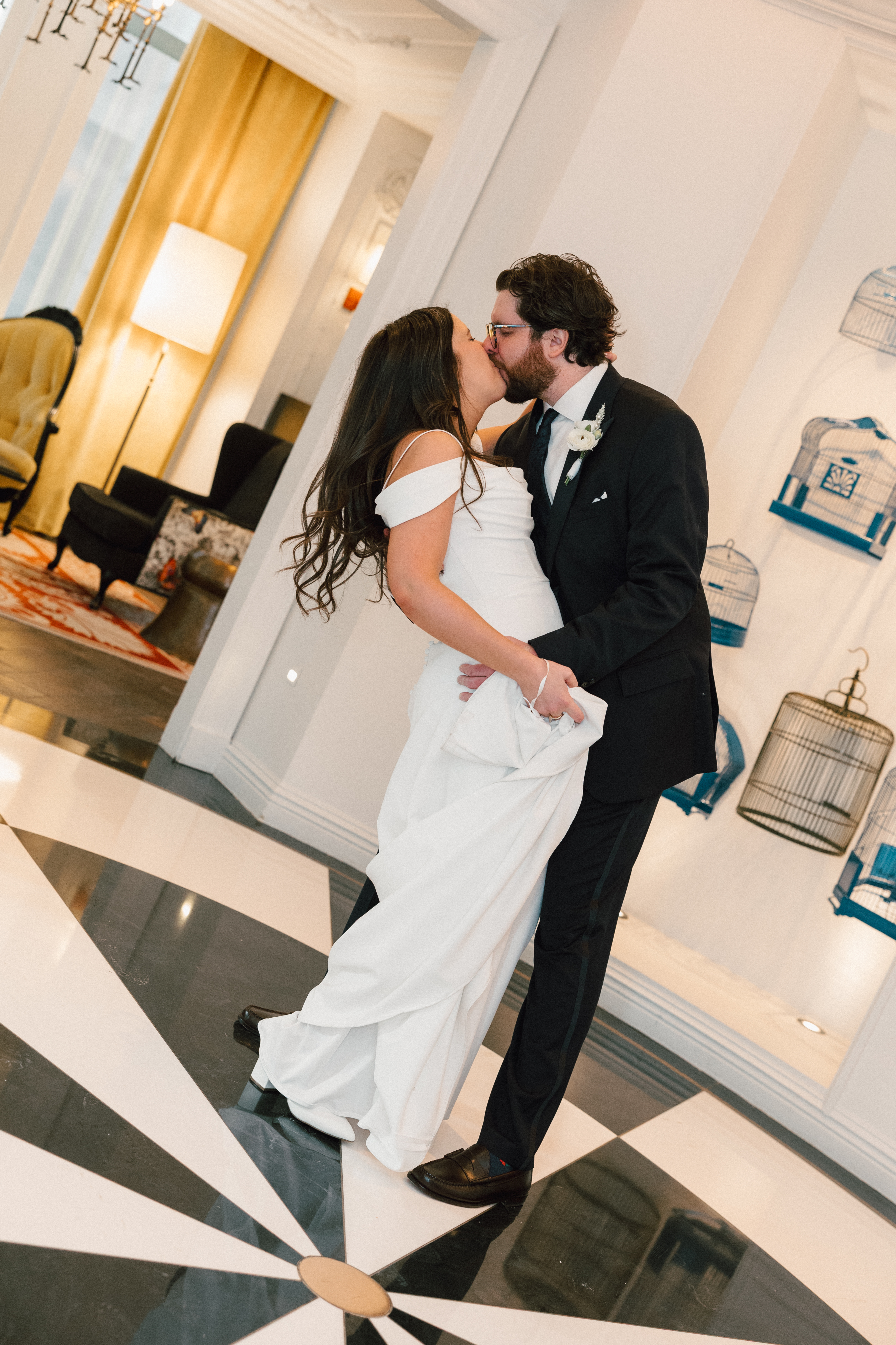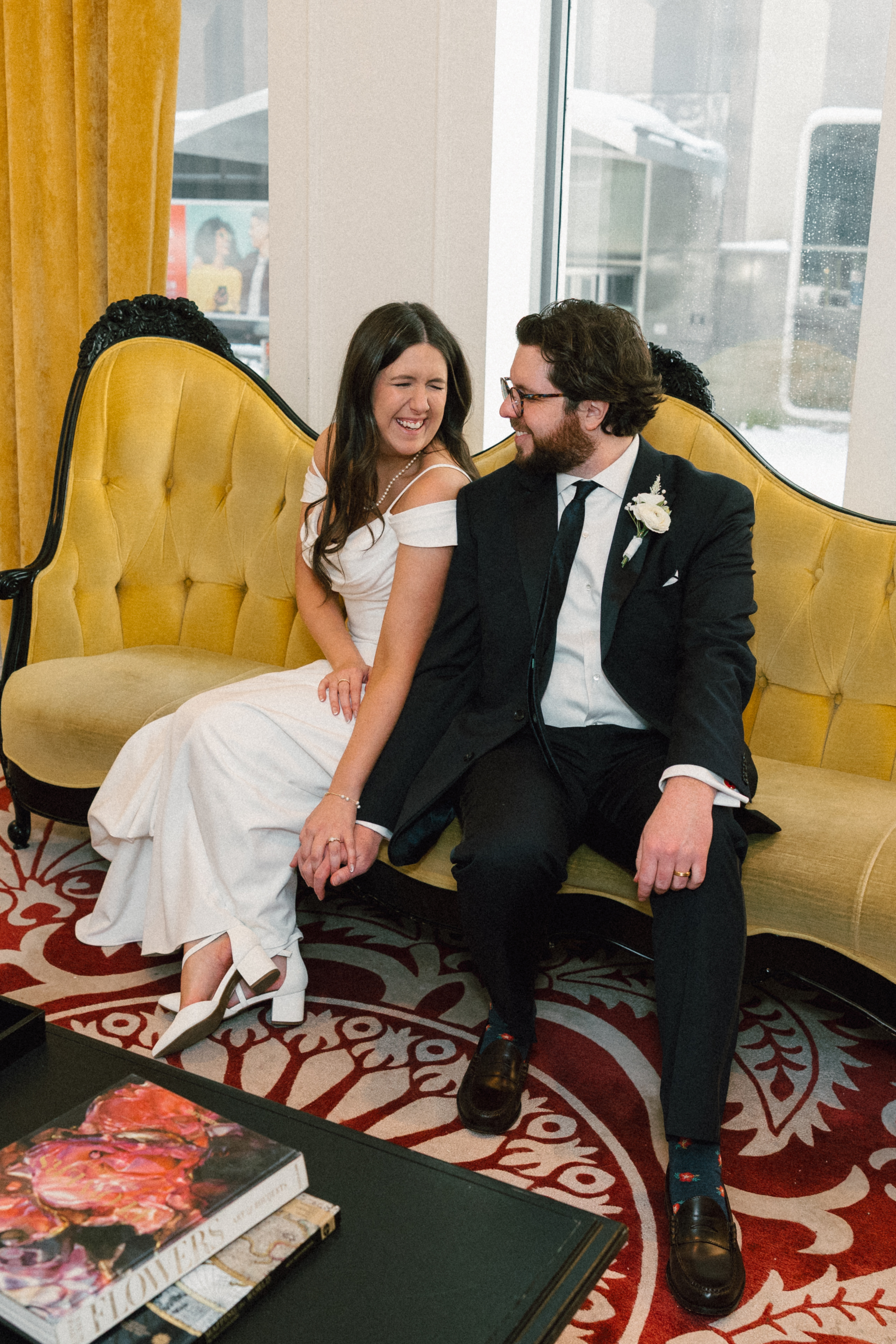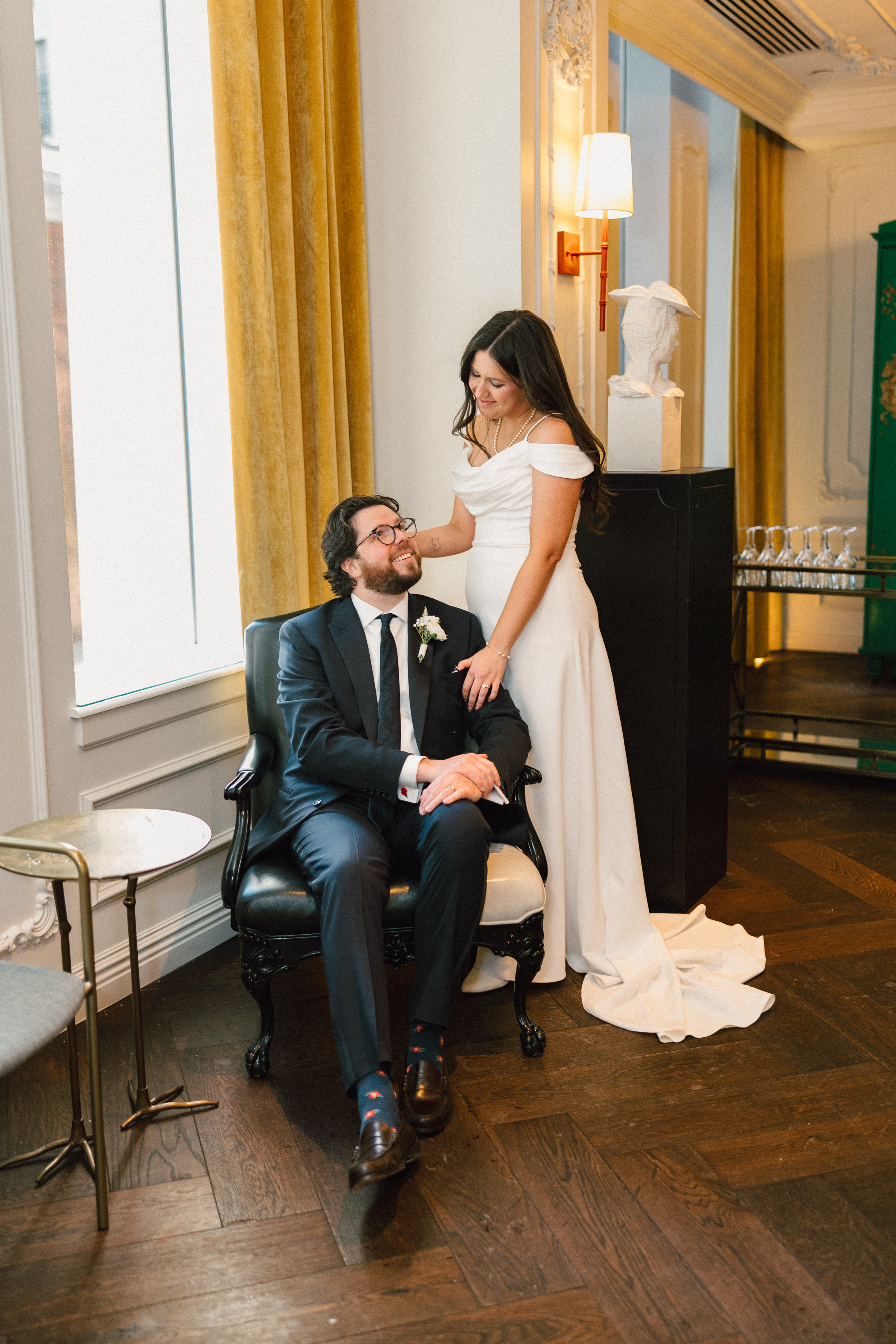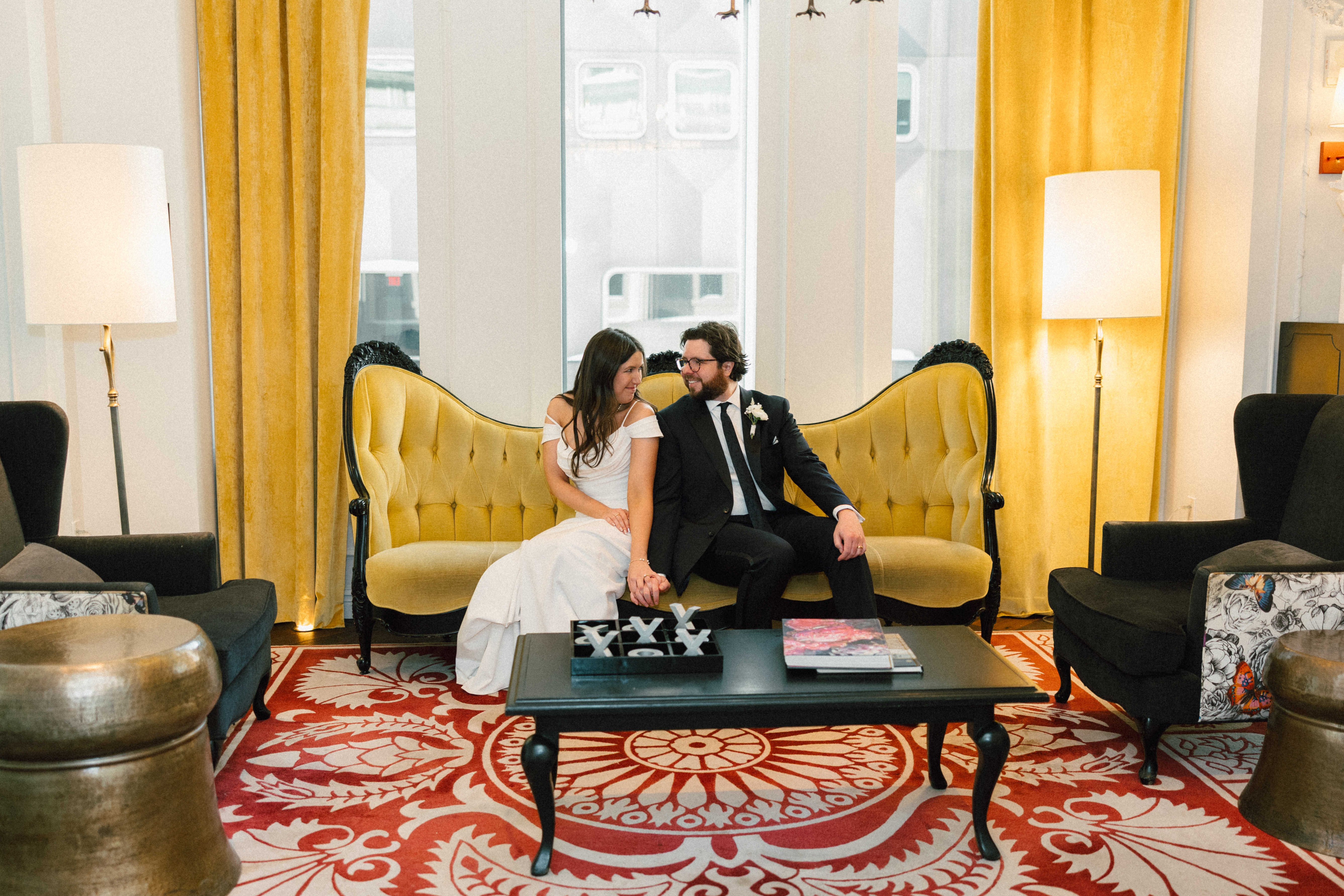 We then left the courthouse to take a few photos in the lobby of Hotel Monaco, where H + M were staying! While we weren’t able to take any portraits outside (it was literally 10 degrees), I’m so glad Hotel Monaco allowed us to use their unique space! It really suited Hannah + Michael’s modern-yet-funky aesthetic.