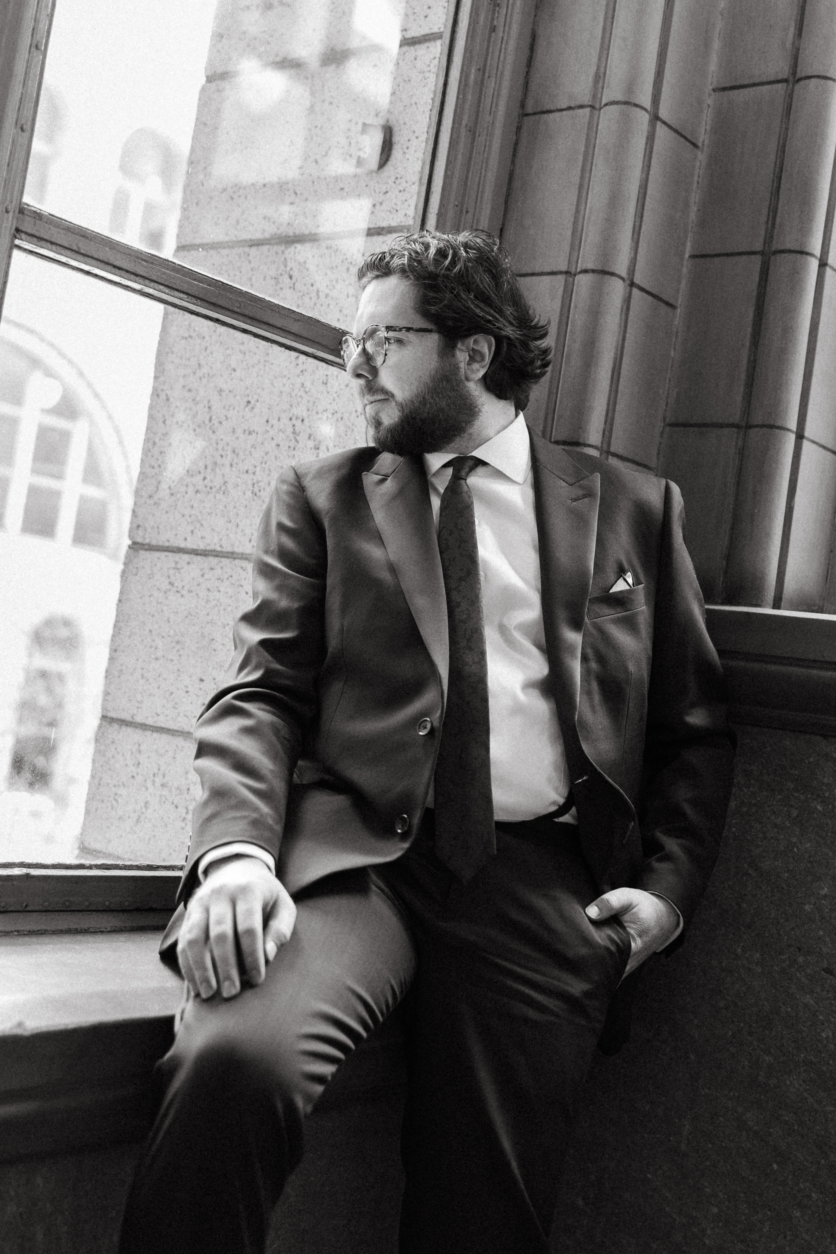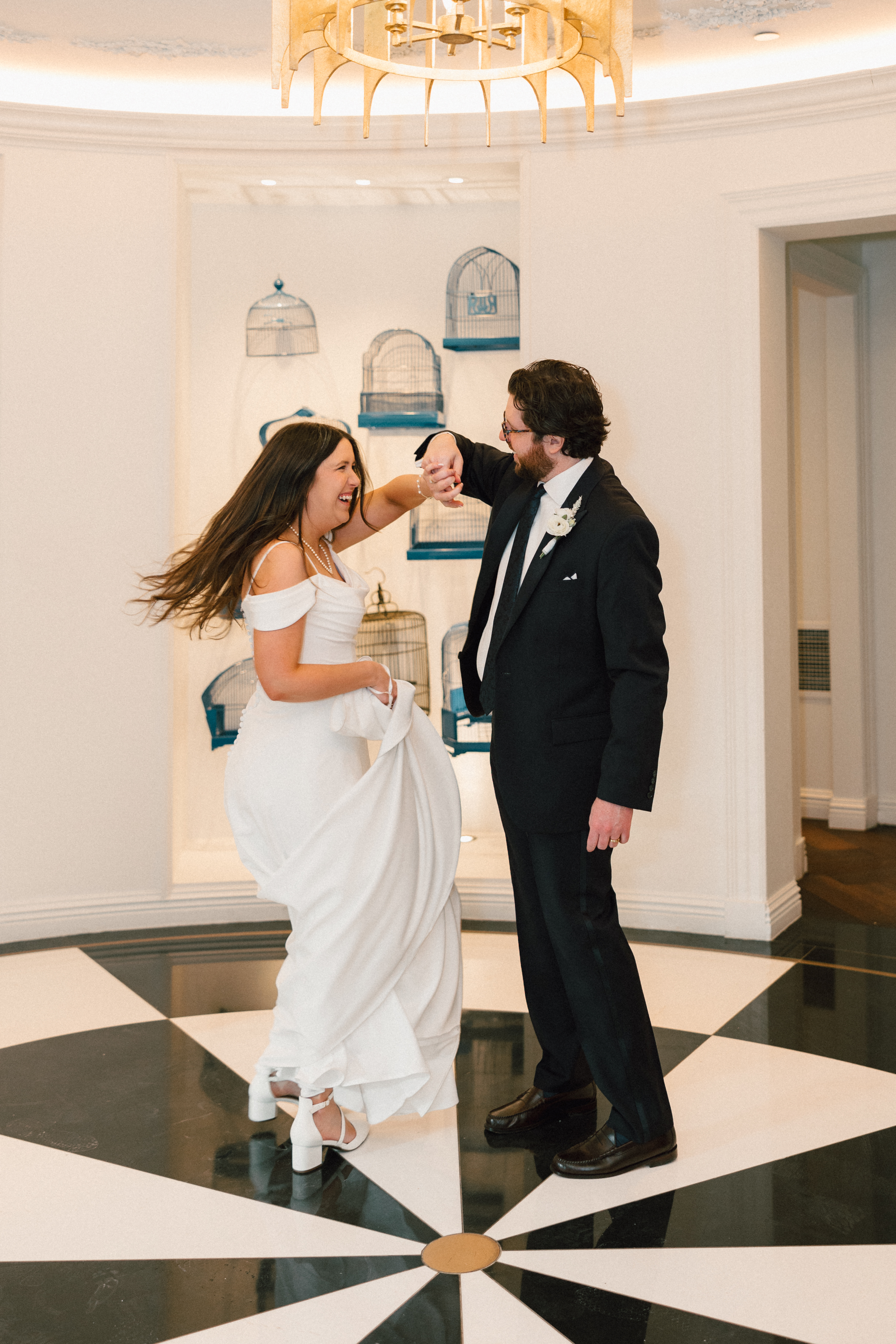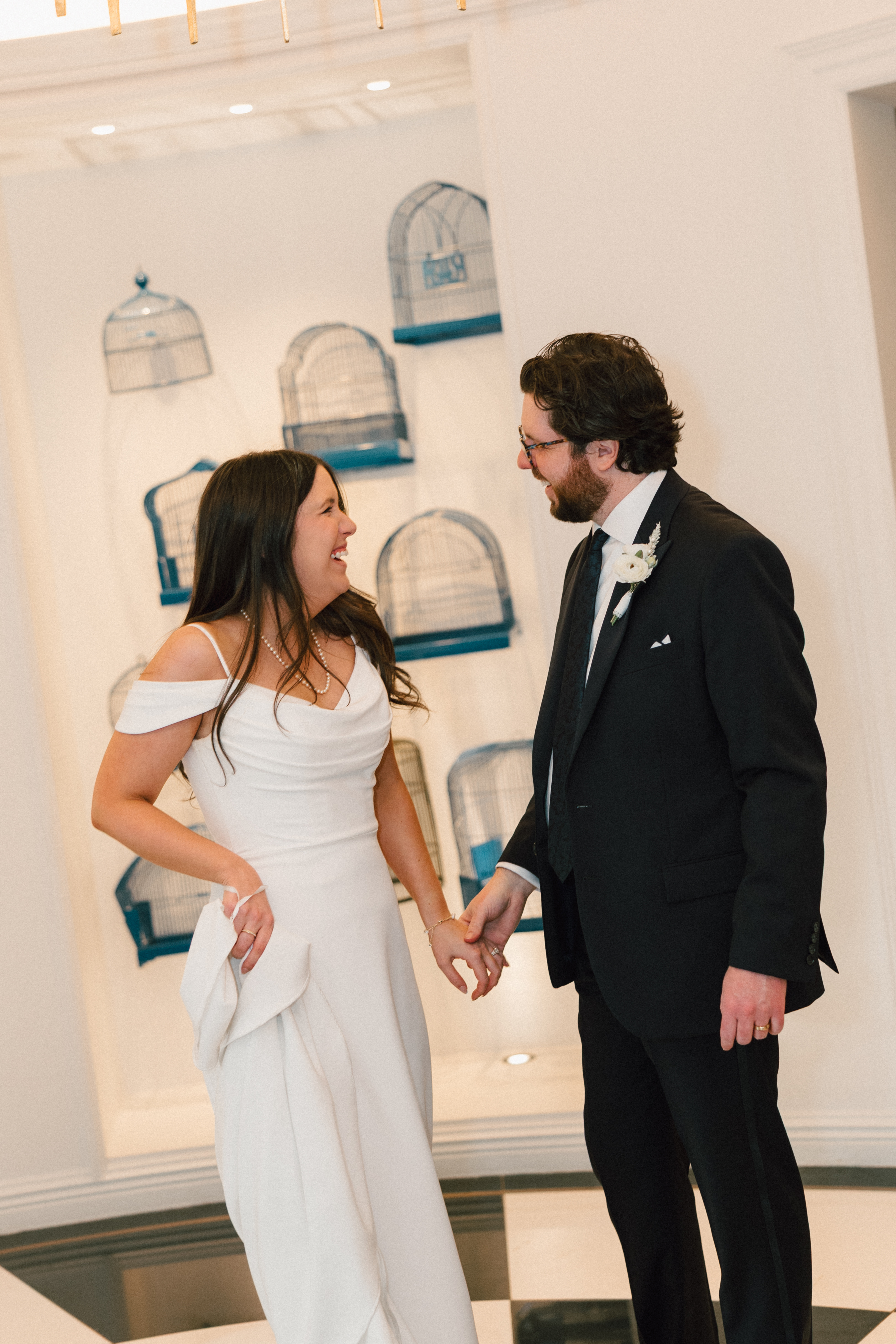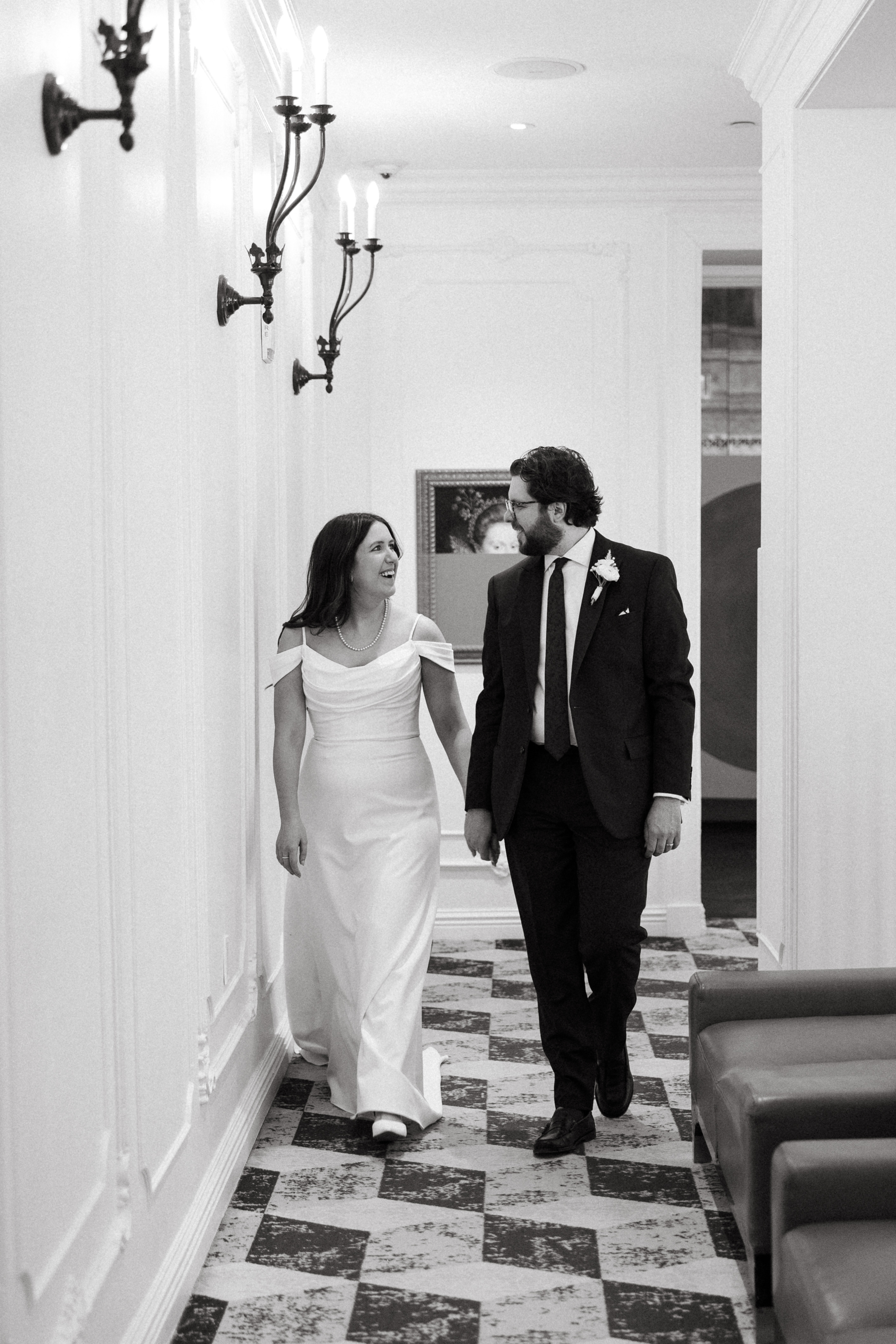 We then left the courthouse to take a few photos in the lobby of Hotel Monaco, where H + M were staying! While we weren’t able to take any portraits outside (it was literally 10 degrees), I’m so glad Hotel Monaco allowed us to use their unique space! It really suited Hannah + Michael’s modern-yet-funky aesthetic.