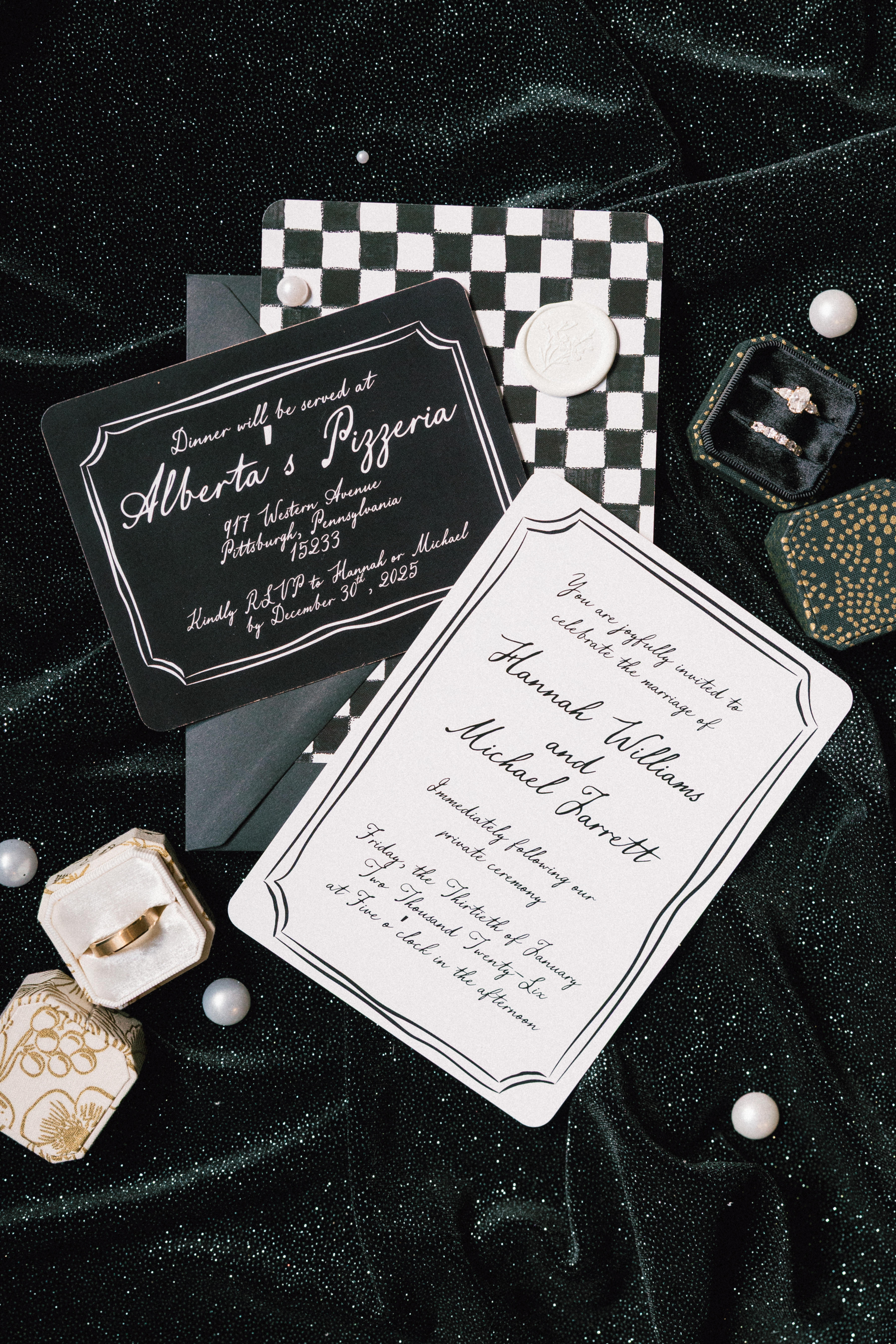 I knew flatlay detail photos were important to Hannah + Michael, so I recruited my good friend Maya (who is a flatlay EXPERT) to be my second shooter/detail pro for the day. They killed it, as always, but H + M’s invitation suite was the star of the show! It was equal parts classy and quirky with black and white checker print and a super cute handwritten font. It was the perfect representation of them!
