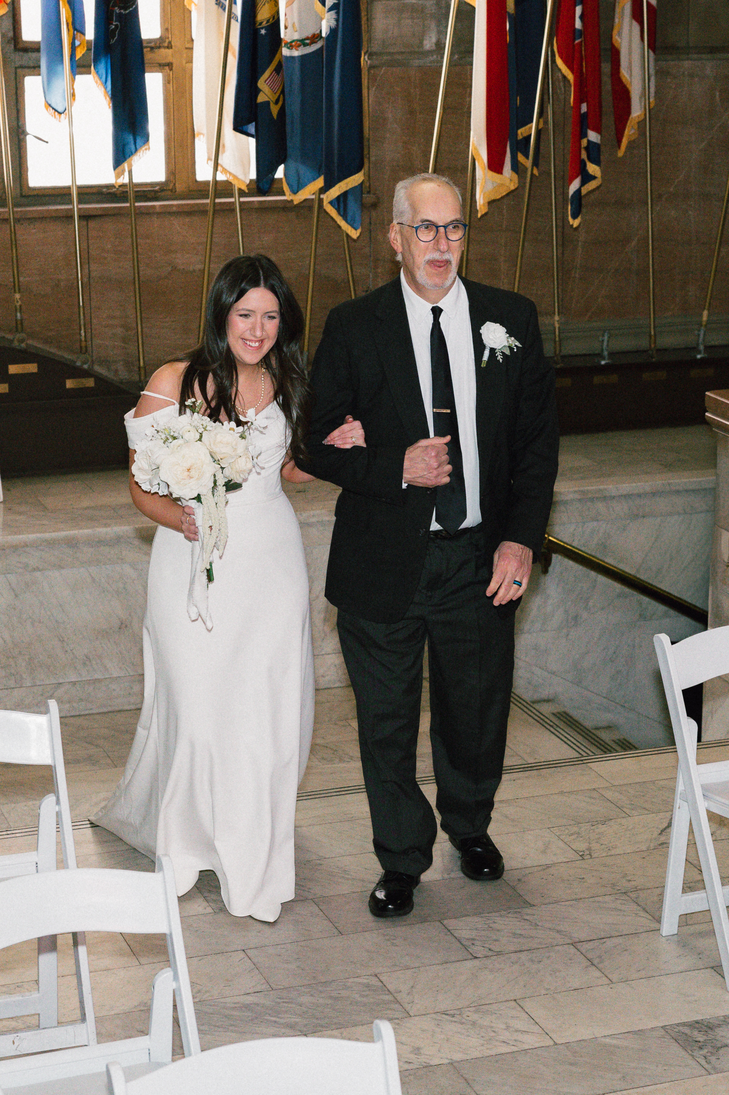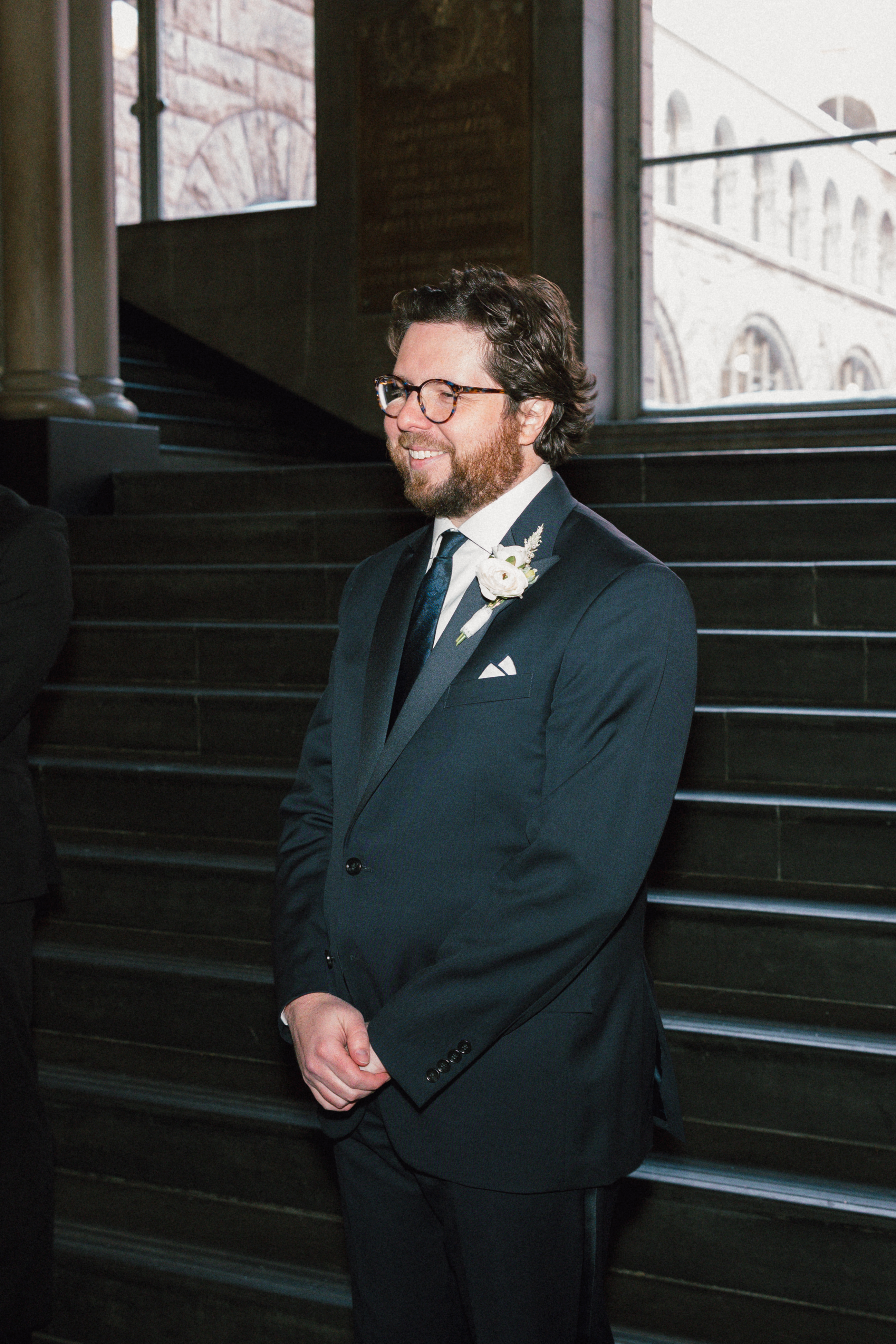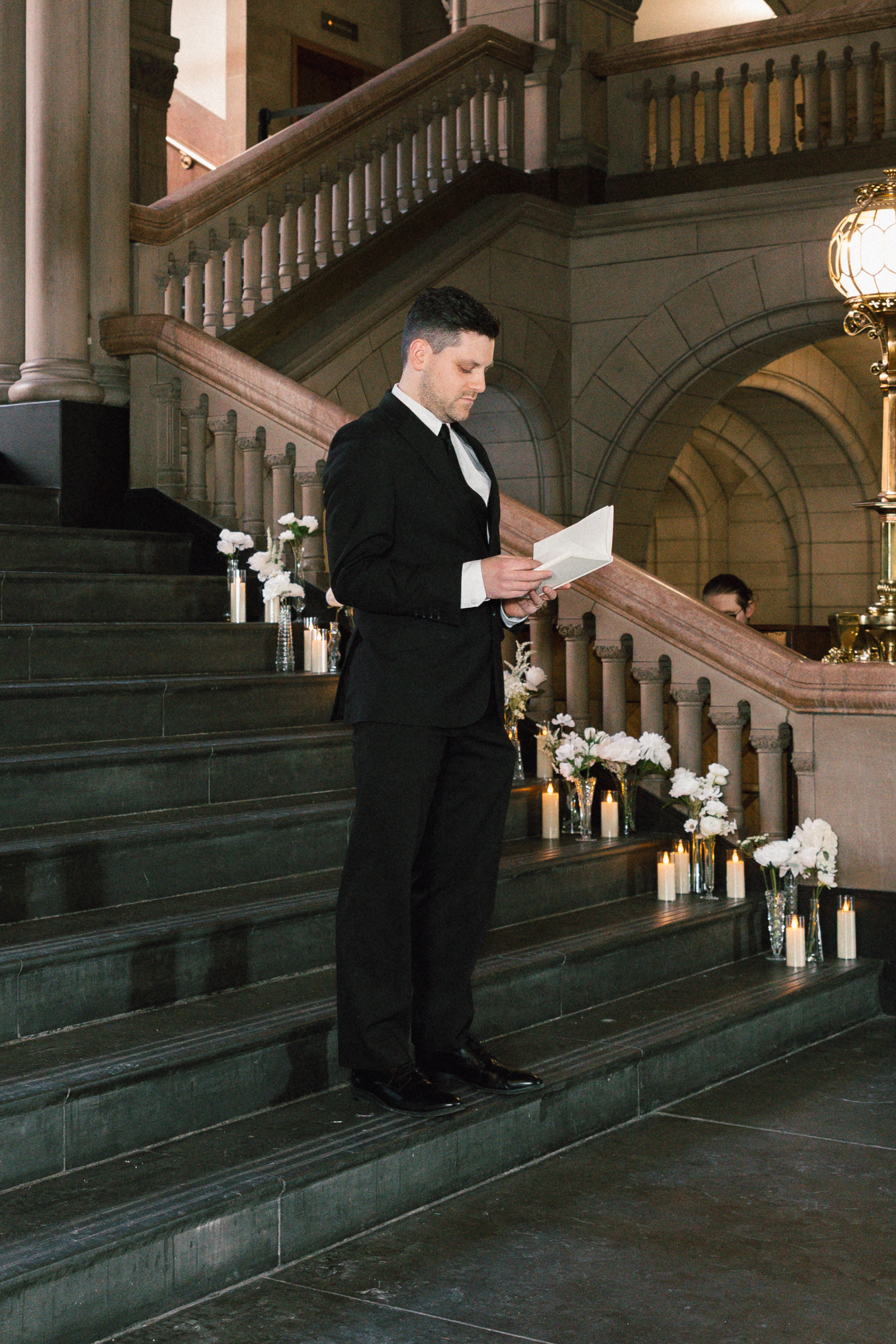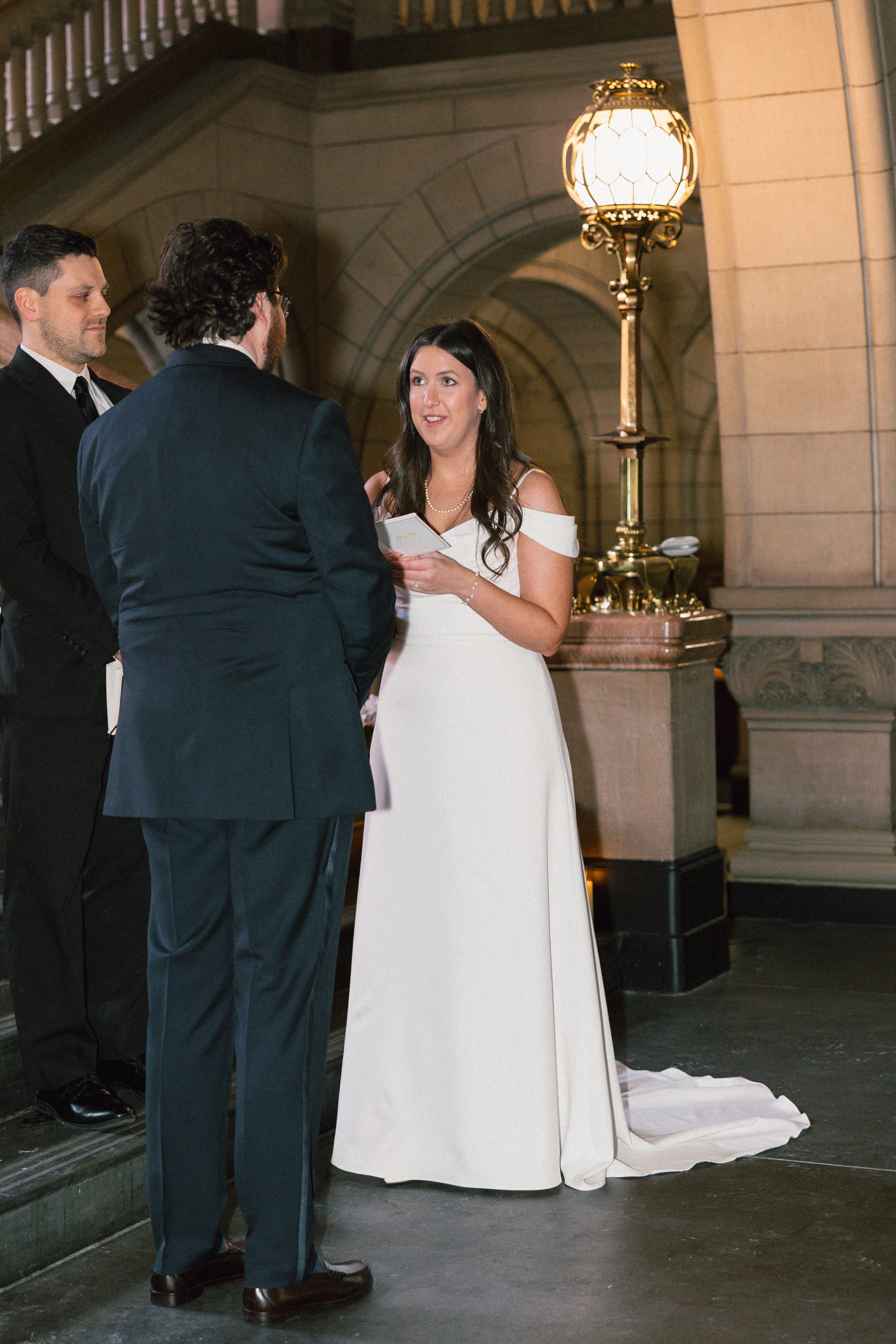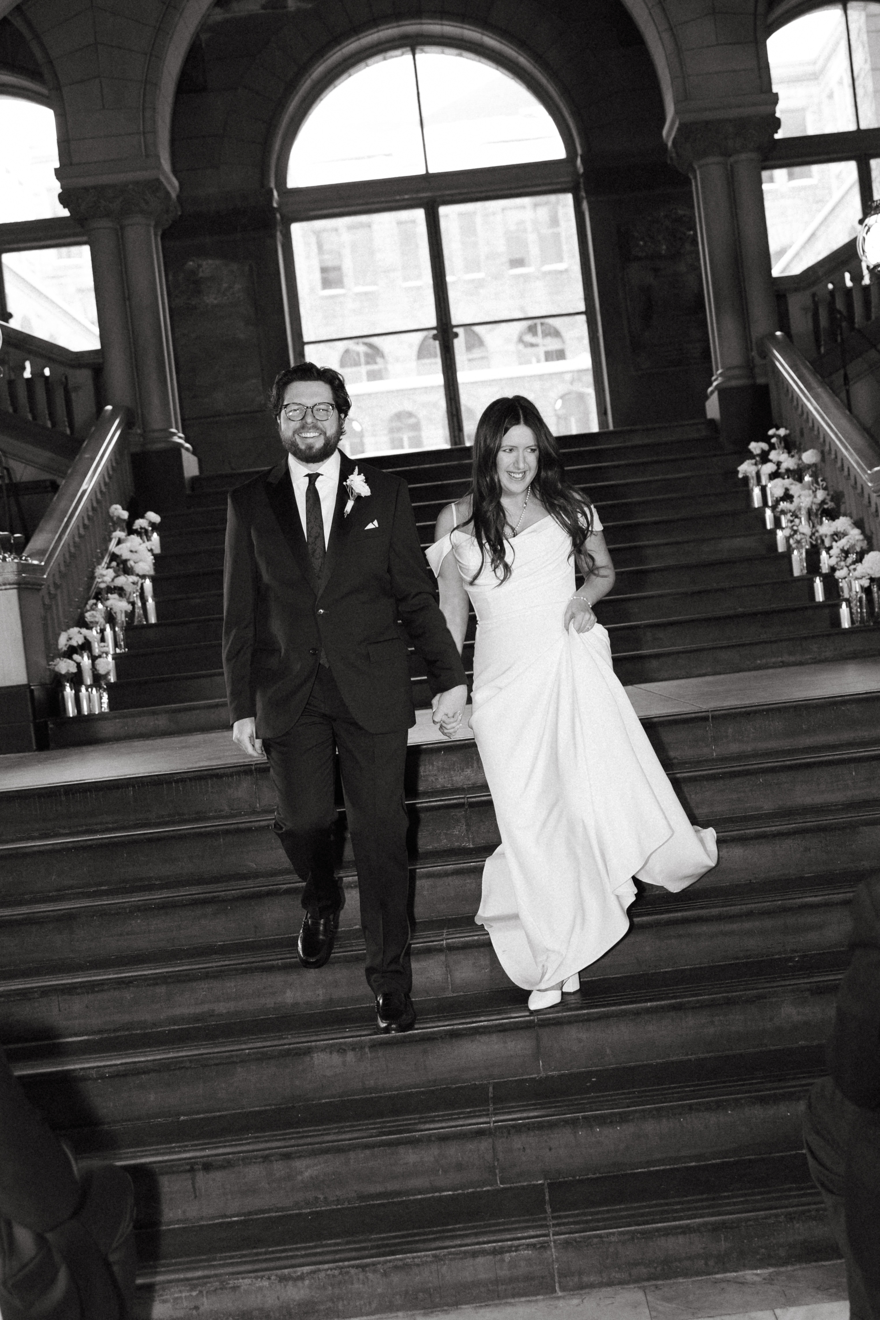 At last, it was time for the ceremony to begin! The grand staircase of the courthouse was decorated with bud vases and candles, which created such a warm and cozy ambience. Their friend provided the music, playing “I Will Follow You Into the Dark” by Death Cab for Cutie on piano as Hannah and Michael walked down the aisle.